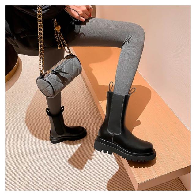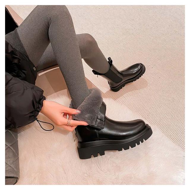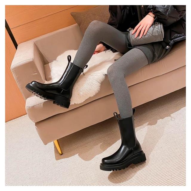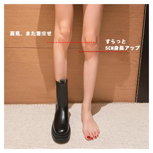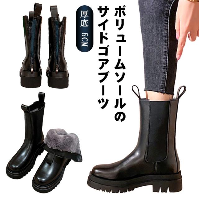 ブーツ ショート レディース サイドゴア ボリューム ソール 厚底 5cm スクエアトゥ ショートブーツ 靴 滑りにくい 歩きやすい 柔らかい 旅行 防寒