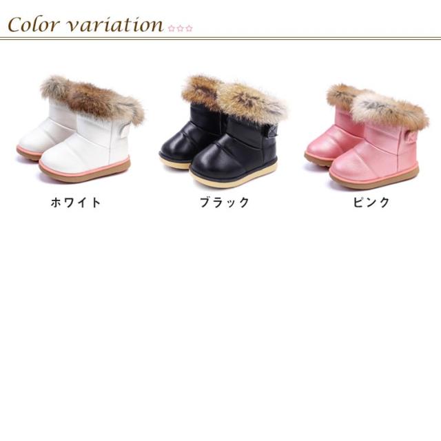 | 見た目も履き心地もふわふわ暖かいキッズスノーブーツ ふわふわのファーがつま先までポカポカ暖かく、防寒もバッチリ! アッパーは素材レザーを採用して、雪や雨染みになりにくいのが特徴です。 かわいいデザインはスカートやパンツ、レギンスなどと合わせてコーディネートの幅も広がります♪ 寒い時期も冷えやすい足元を暖かく保て、活発なお子様にも安心です。 | |