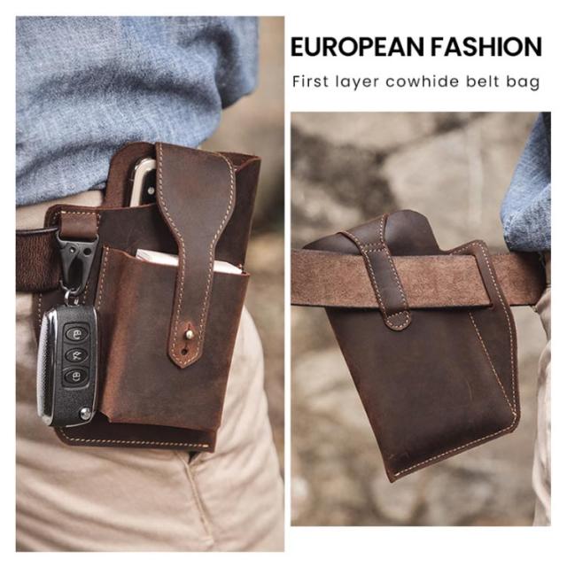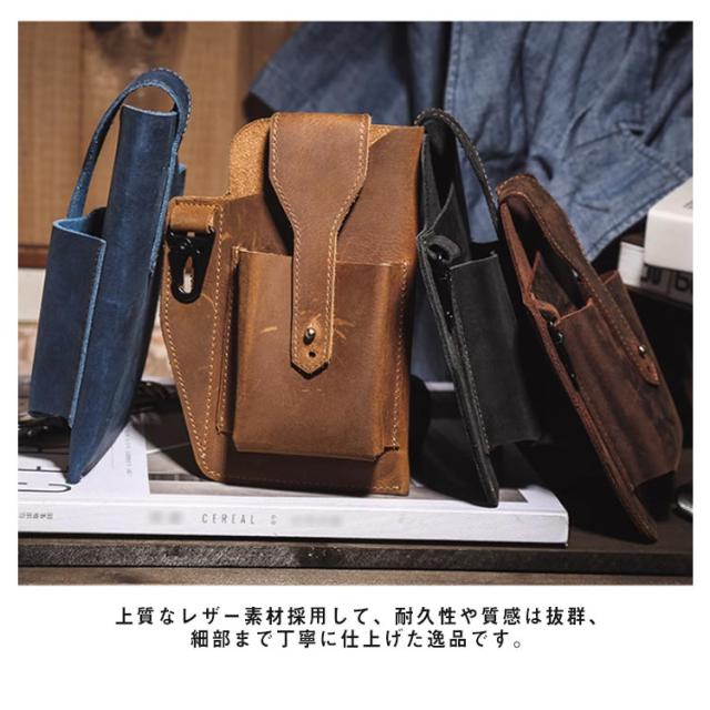 【送料無料】スマホポーチ メンズ 縦型 おしゃれ 携帯電話ポーチ 携帯電話ホルスター ウエストポーチ バッグ 腰に付ける式 牛革 上質 アウトドア 収納ポーチ 軽量 小型 ベルトポーチ 釣り キャンプ レジャー スマートフォンポーチ ギフト プレゼント
