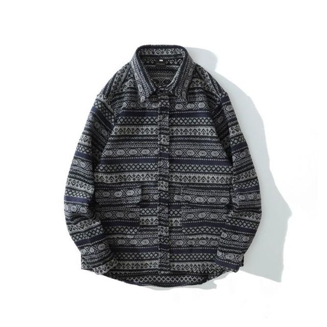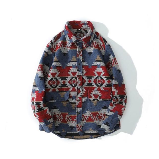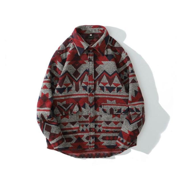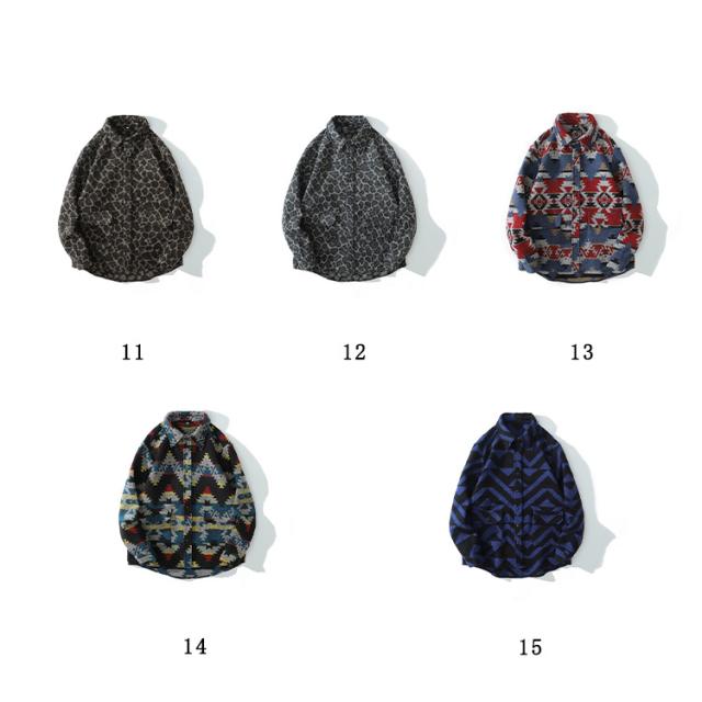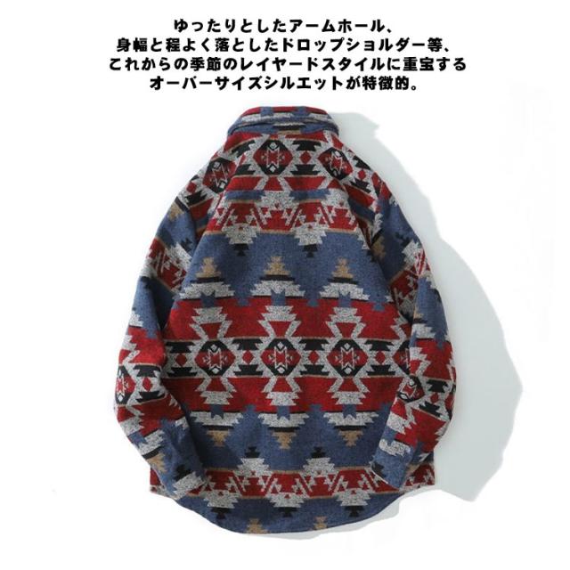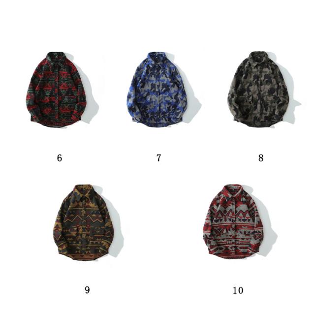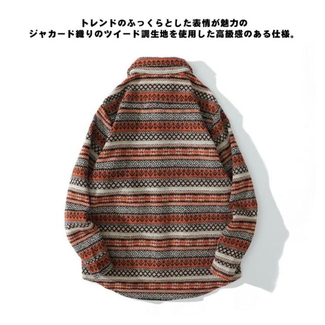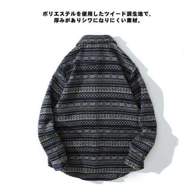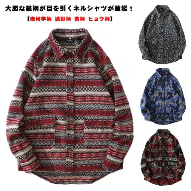 メンズ シャツ カジュアルシャツ 秋冬 厚手 総柄 ジャガード レトロ 古着風 シャツ ジャケット アウター 羽織り 通勤 通学 ゆったり オーバーサイズ アメカジ ツイード調 幾何学柄 迷彩柄 豹柄 ヒョウ柄【送料無料】