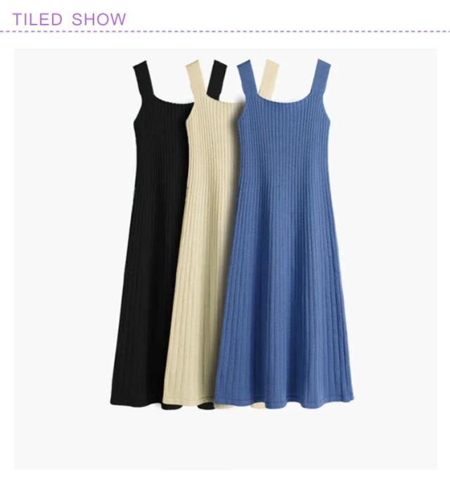 ニット レディース ロング丈ワンピース ニットワンピース ニットキャミソールワンピース ニットトップス ニットセーター ノースリーブ キャミワンピ ロング丈 ミモレ丈 カジュアル 普段着 着回し シンプル トレンド