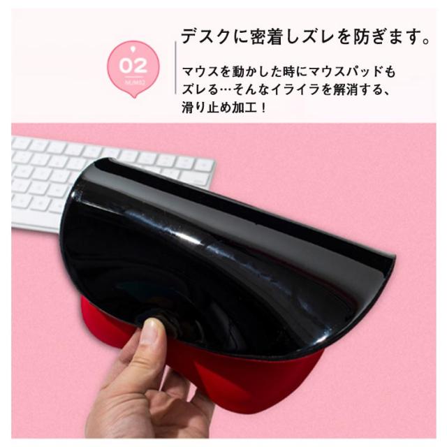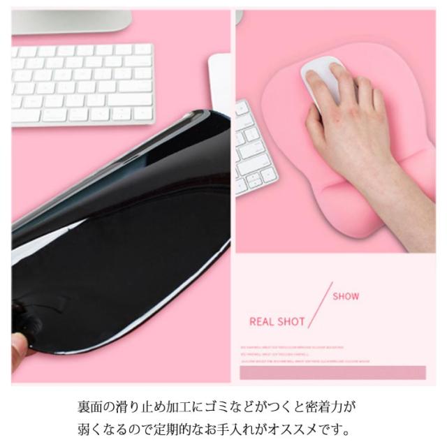 | マウスを持った時に負担がかからないベストな高さに手首を固定できるリストレスト。 最適な角度でマウスを操作できます。 低反発素材なので柔らかすぎず手首のカーブにフィット! 長時間のマウス操作でも手首をやさしく支えてくれます。 マウスを動かした時にマウスパッドもズレる…そんなイライラを解消する、滑り止め加工! デスクに密着しズレを防ぎます。 肌に当たる面は滑らかで肌触りも◎ マウスもひっかからずスムーズに動かすことができます。 汚れたら水洗いできるので清潔。 裏面の滑り止め加工にゴミなどがつくと密着力が弱くなるので定期的なお手入れがオススメです。 | |