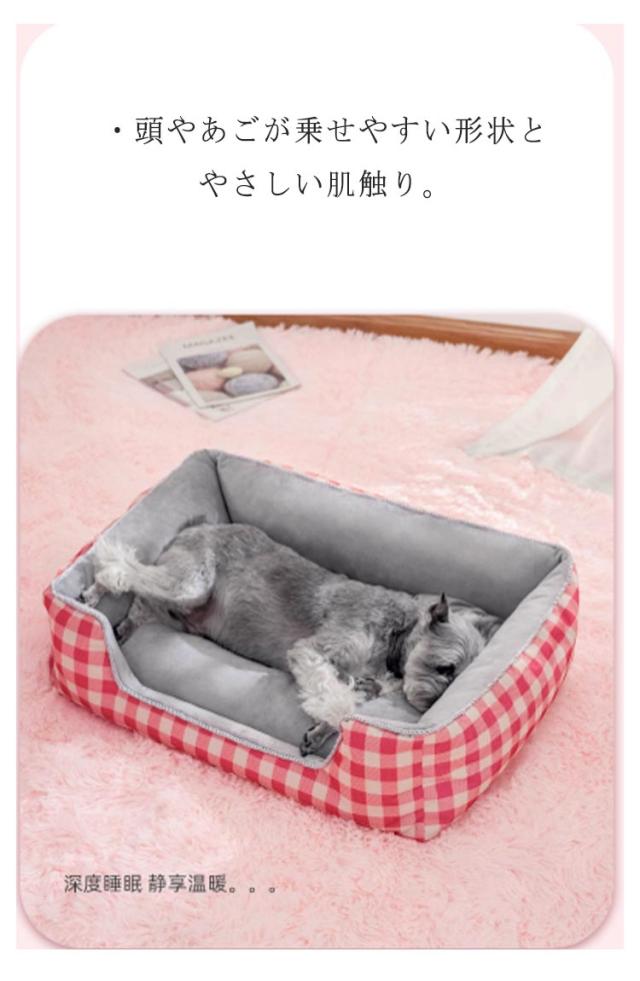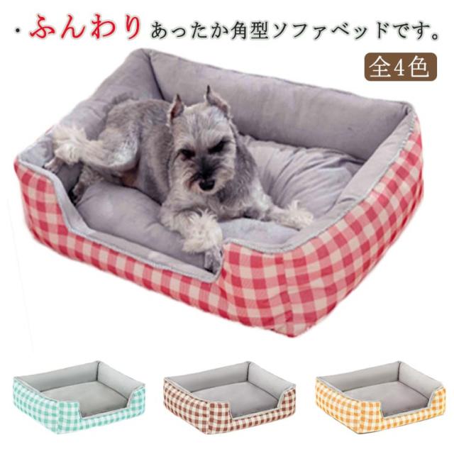 ペットソファー ペットベッド 洗える 角型 犬 ベッド クッション ソファー 60*45*19CM 中綿 滑り止め 丸洗い カバーを外して洗える 防寒 暖かい 小型犬 中型犬用 耐久性 オールシーズン チェック柄 全4色
