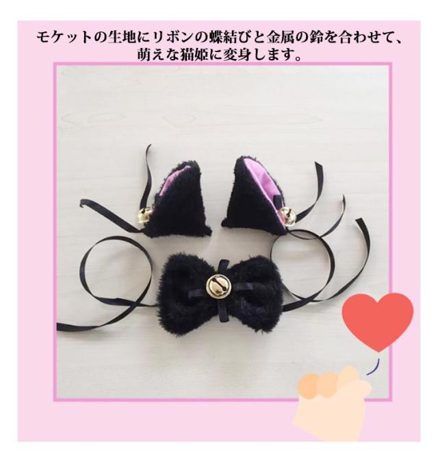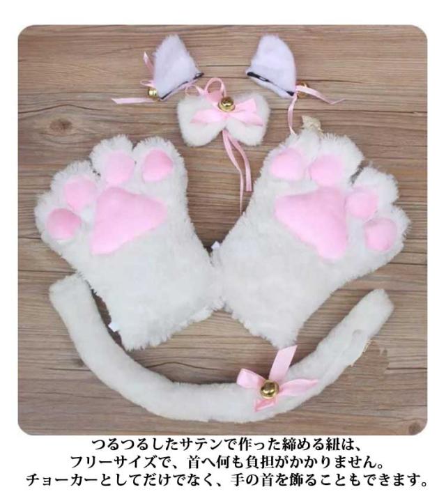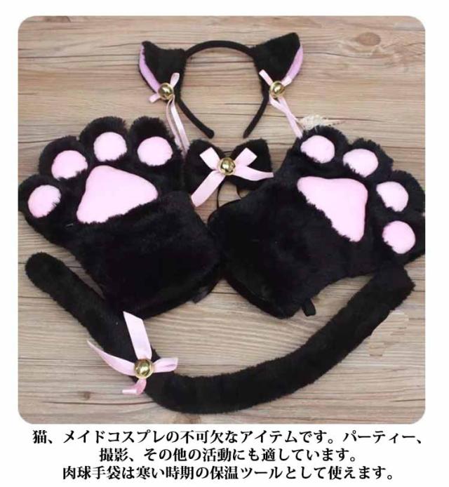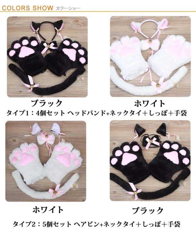 送料無料 萌え 萌え にゃんこ 4点セット 猫耳 しっぽ 喫茶店 コスプレ ハロウィン 猫耳 カチューシャ コスチューム 肉球 手袋 首輪 小物 黒 白 ヘッドバンド ヘアピン 可愛い クリスマス プレゼント
