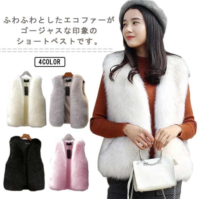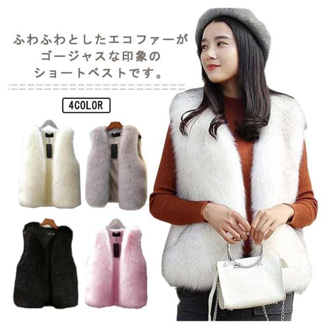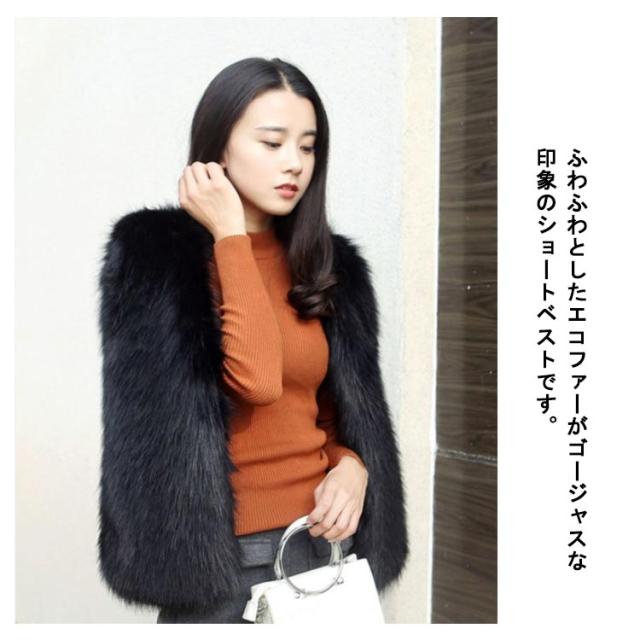 エコファー ベスト ノーカラー ショート フェイクファー ジレ ファーベスト ファーコート ファージャケット エレガント コーディガン 羽織 ショートベスト もこもこ ジレ ゆったり 大きいサイズ 40代 50代 レディース 個性的 送料無料