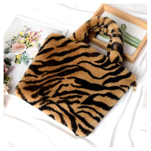 レオパード柄 ハンドバッグ トートバッグ レディース 2way ショルダーバッグ ファー バッグ バック カバン ファーバッグ かばん 鞄 斜めがけ ふわふわ フワフワ モフモフ エコファー 大容量 もこもこ 軽量 ショッピングバッグ