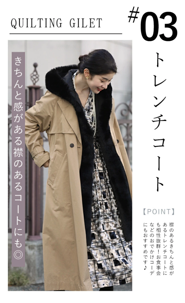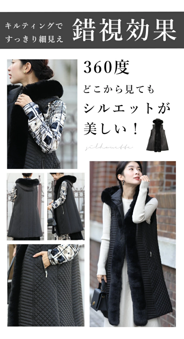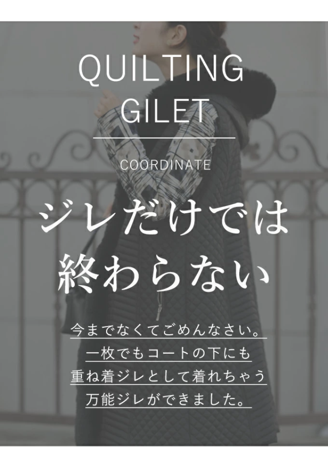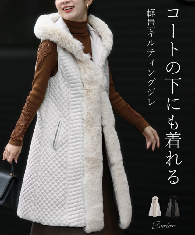再入荷11月14日 コートの下にも着れる 軽量キルティングジレ(S~L対応)frm00020 cawaii インナー ロングジレ コート アウター フード ふわふわ レディース アウター ベスト 秋冬 防寒 ジャケット ロング 体型カバー ママ 50代 60代 40代 中綿