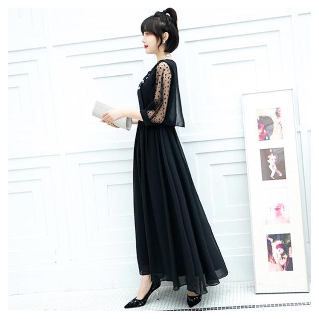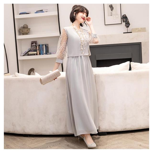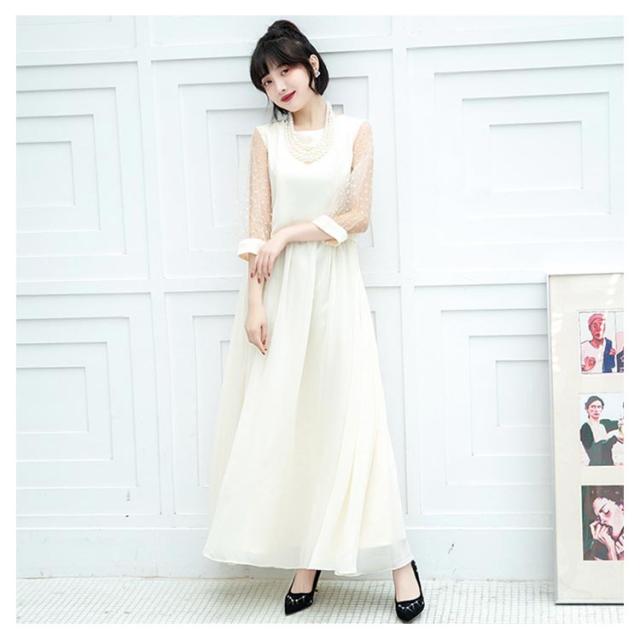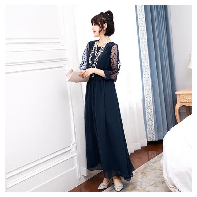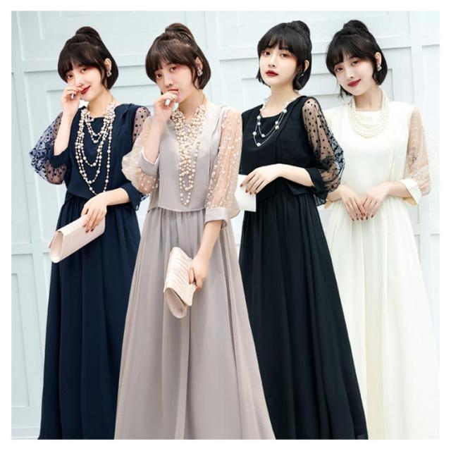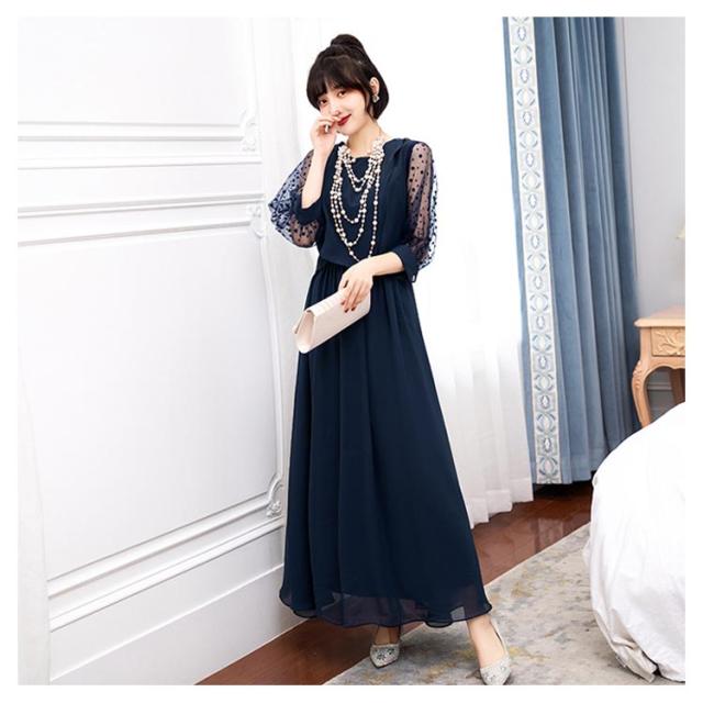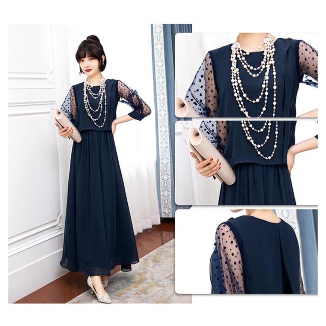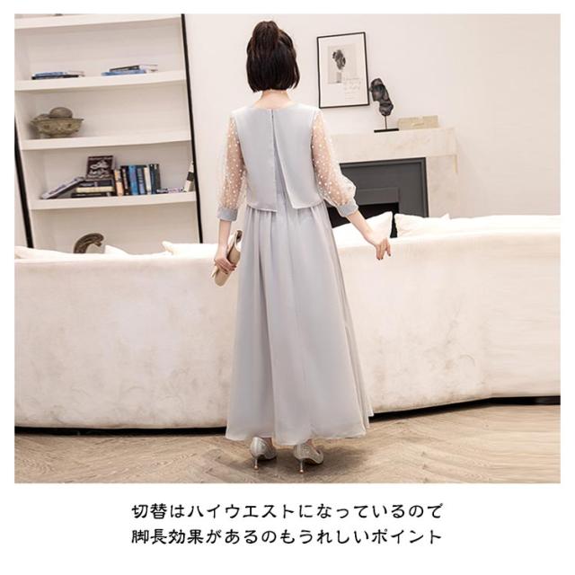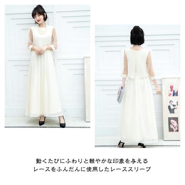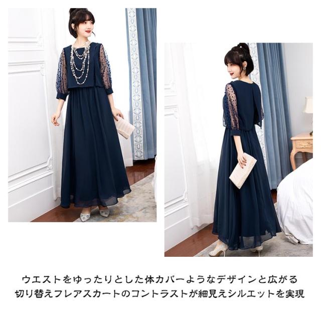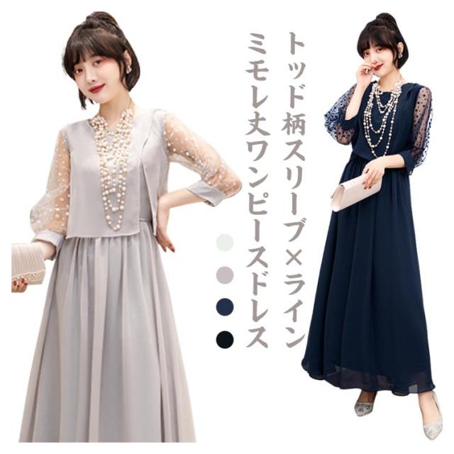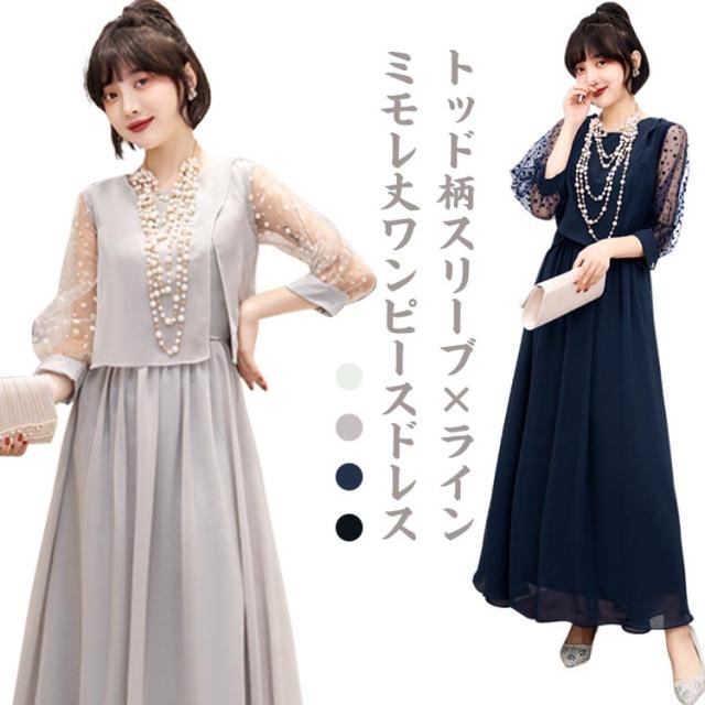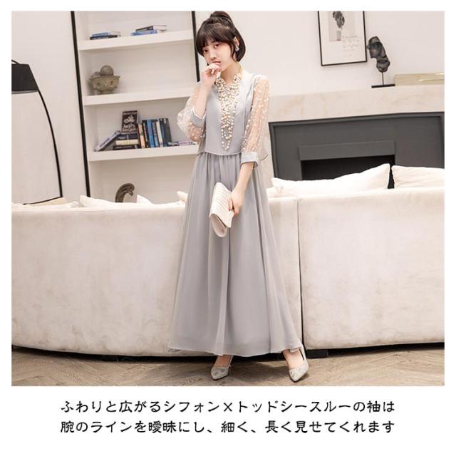 パーティードレス 結婚式 ワンピース ドレス 袖あり 五分袖 シースルー袖 ロングドレス 大きいサイズ ロング ロング丈 長袖 トッド フォーマルワンピース ミモレ丈 お呼ばれ 体型カバー パーティドレス レディース 二次会 成人式 同窓会