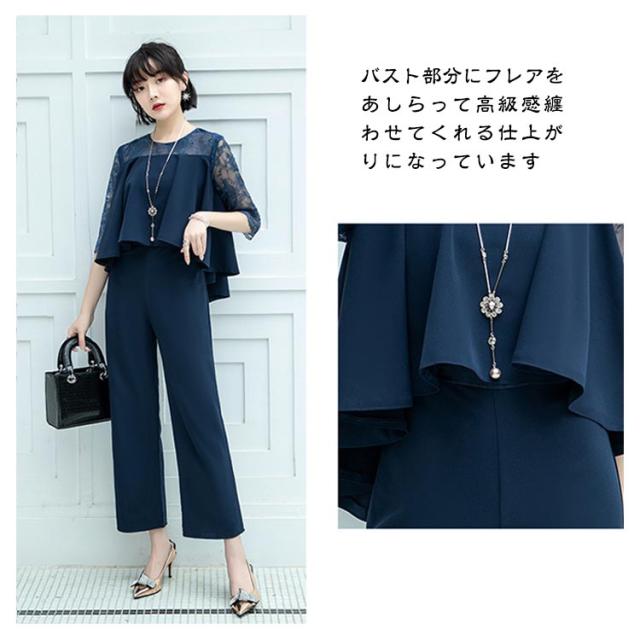 パンツドレス パーティードレス フォーマルドレス パンツスーツ 大きいサイズ 七分袖 長袖 結婚式 ワンピース 上品 お呼ばれ 20代 30代 40代 春 夏 秋 冬 体型カバー 同窓会 成人式 韓国 袖あり 袖付き おしゃれ かわいい