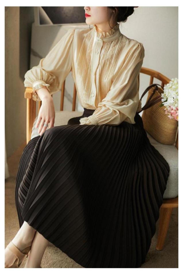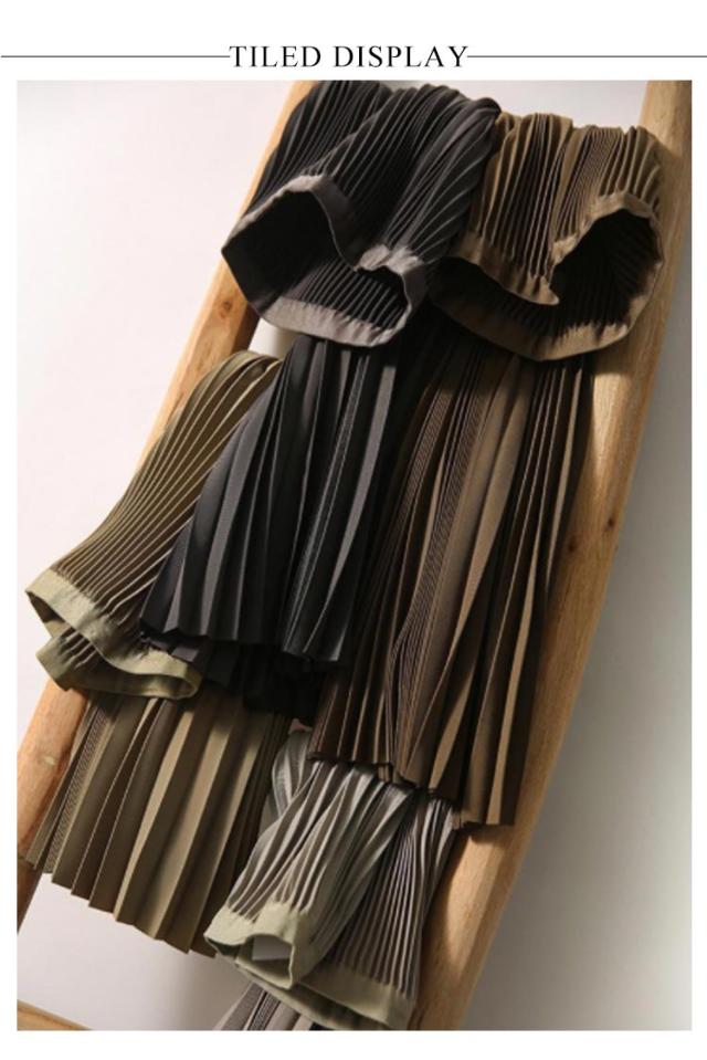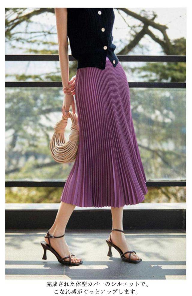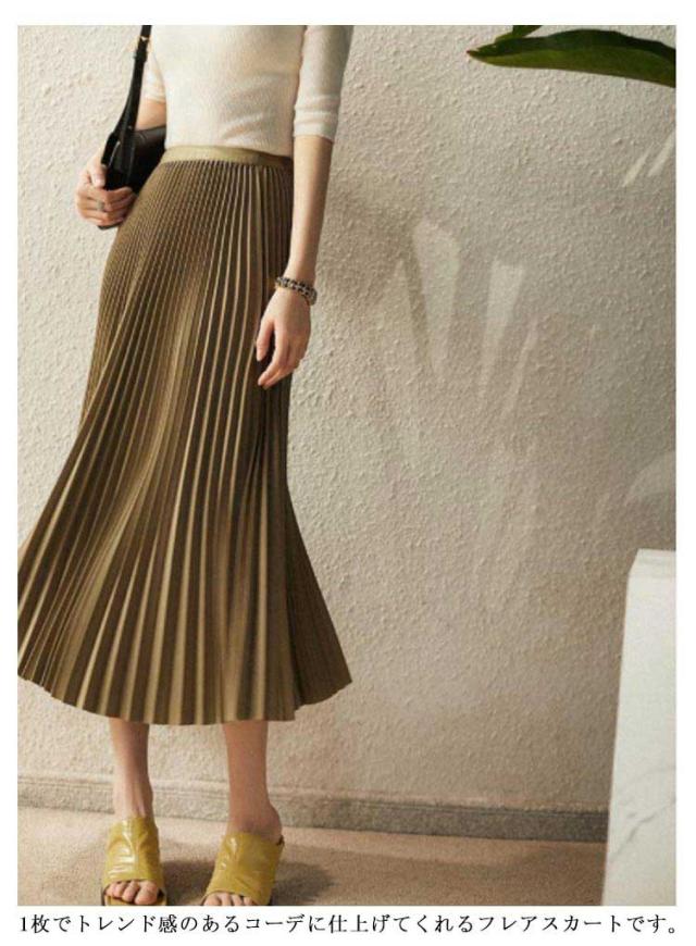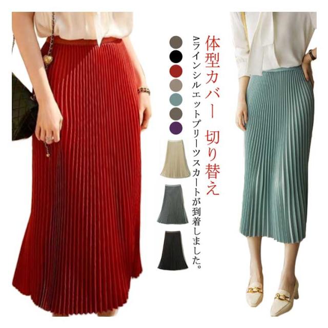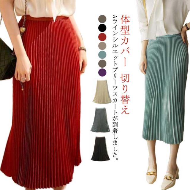 プリーツスカート スカート ロングスカート フレアスカート ハイウエスト ウェストゴム おしゃれ 春 秋 冬 体型カバー 切り替え カラーバリエーション 選べる丈 通勤 シンプル エレガント ビンテージ S M L XL