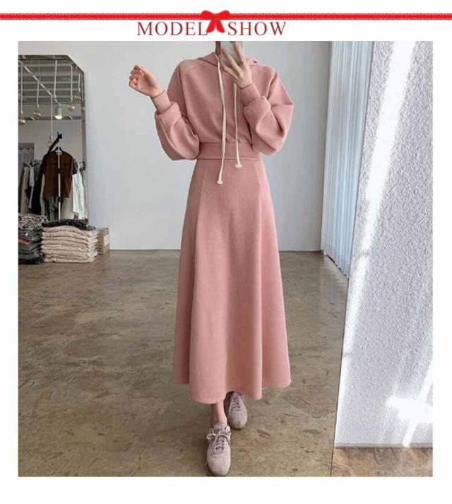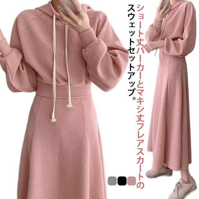 スウェット セットアップ レディース スカート パーカー 長袖 スウェットスカート マキシ丈 スウェットパーカー フード付き 2点セット Aライン フレア スカート 大人 通学 通勤 カジュアル おしゃれ 【送料無料】