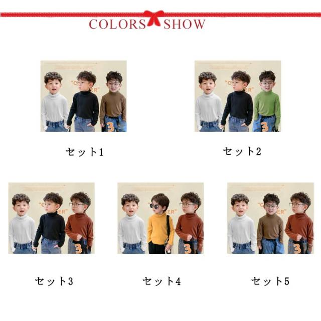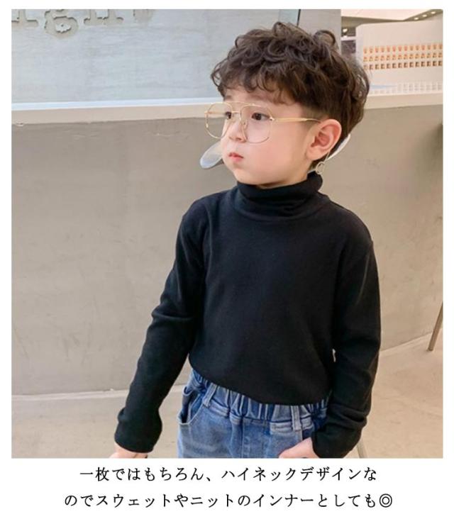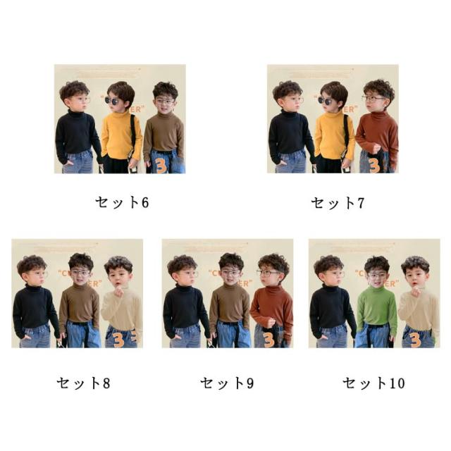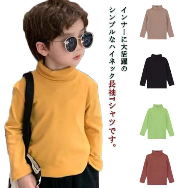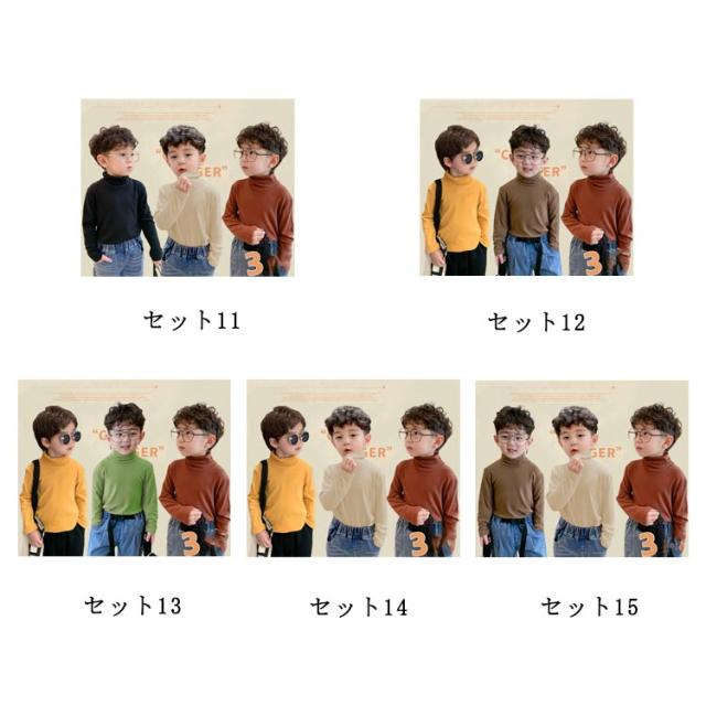 キッズ カットソー 3枚セット 長袖 インナー ロンT 男の子 子供服 アンダーシャツ ハイネック タートルネック スリム 細身 春 秋冬 ストレッチ 伸縮性 薄手 90/100/110/120/130/140 可愛い 無地 シンプル 黒 白 【送料無料】