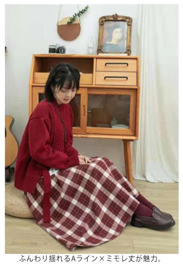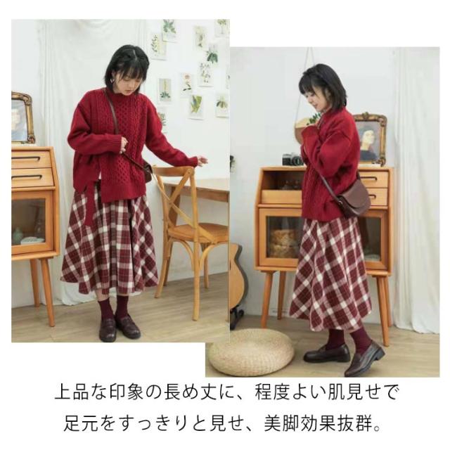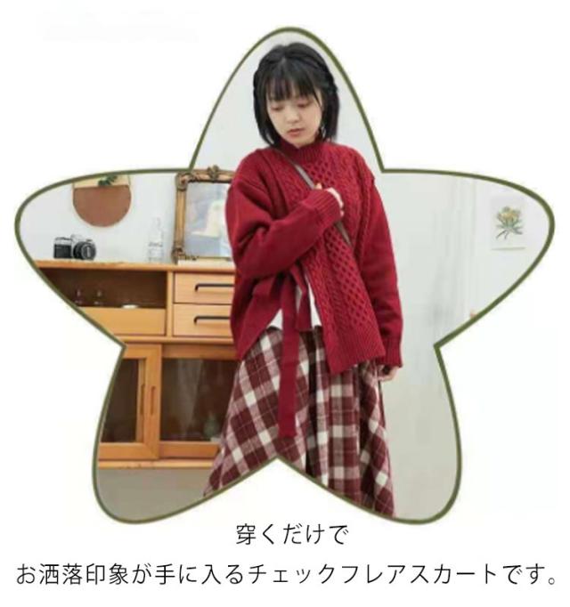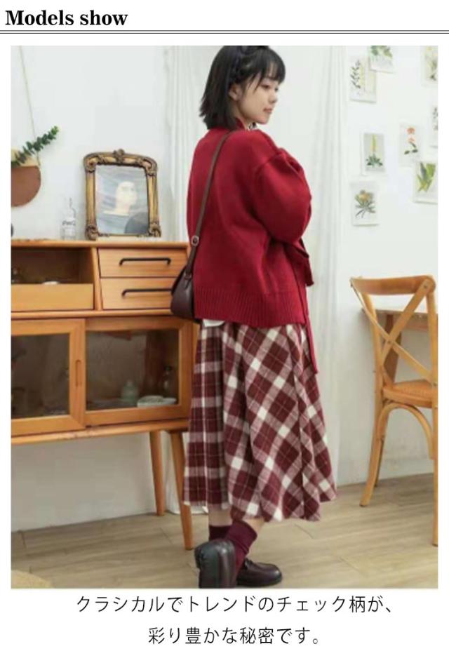 チェックフレアスカート ロングスカート 秋冬 レディース フレアスカート ボトムス チェック柄 Aライン チェック柄 スカート クラシカル 森ガール ロング丈