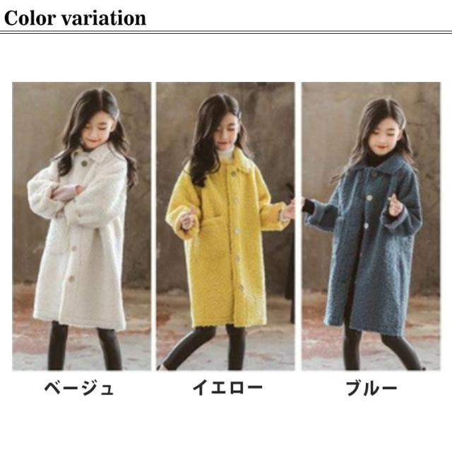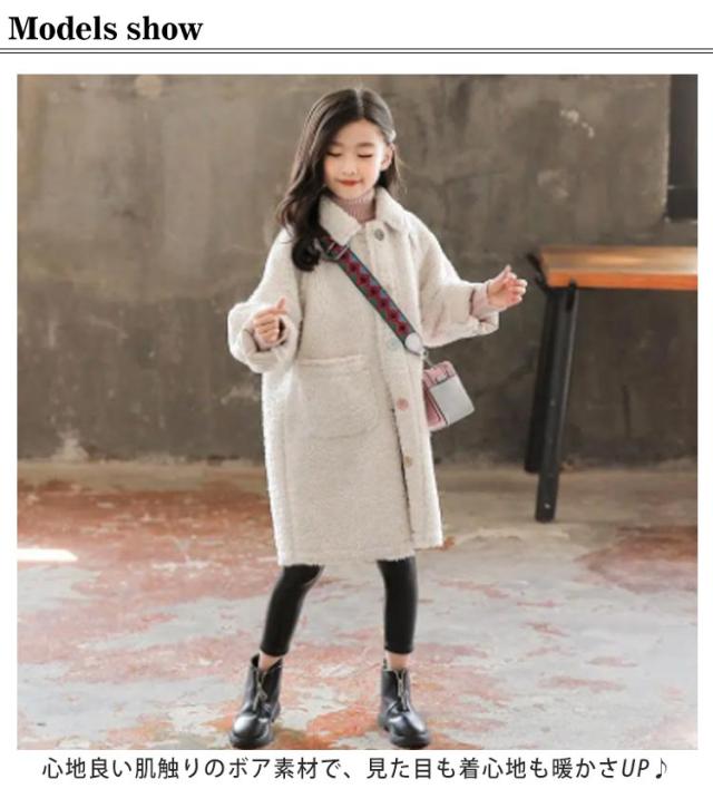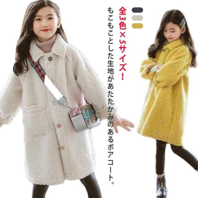 女の子コート ボアブルゾン ボアコート 子供服 もこもこ コート ロング ステンカラー 中綿入り ロングコート ガールズ 小学生 中学生 秋冬 防寒 130 140 150 160 170