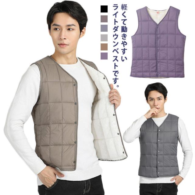 ダウンベスト メンズ 裏起毛 中綿ベスト 秋冬 ノースリーブ カジュアル vネック 大きいサイズ ダウンコットン 綿入りベスト あったか ベスト トップス チョッキ おしゃれ 普段着 アウトドア 通勤 通学 登山 送料無料