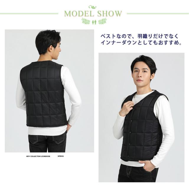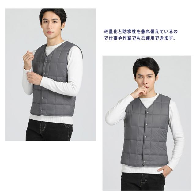 | 軽くて動きやすいライトダウンベストです。温かさと軽さを両立させるため、素材にこだわり抜いて超軽量を実現させました。糸の一本一本まで軽量化を追求し、ふんわりとした軽い着心地で快適な着心地です。 ふんわり弾力性羽毛を使用した暖かい着心地、暖かいのに驚くほどの軽さ!軽量化と防寒性を兼れ備えているので仕事や作業でもご使用できます。 シンプルなデザインで作業時だけでなく、普段使い等着用シーンを選ばず着こなせるデザインです。シルエットは細身なので、身体にぴったり密着するタイプになります。 ベストなので、羽織りだけでなくインナーダウンとしてもおすすめ。いつでもどこでも気軽に羽織れてインナーにも使える、超軽量ウルトラライトダウンベスト! | |