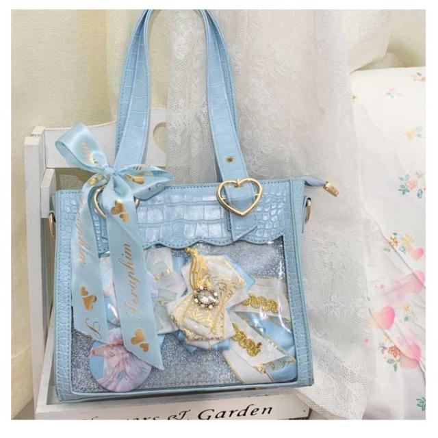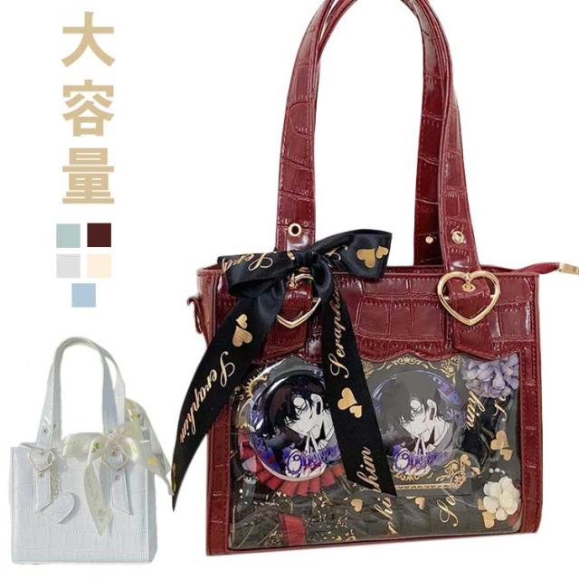 痛バッグ 痛バック ビニールバッグ 痛バ トート 痛バ トートバッグ レディース ビニール トート 缶バッジ 痛バック クリアバッグ 魅せバッグ 推しカラー 推し活 ガールズ リボン ハート 実用的 ホワイト ミント ブルー レッド