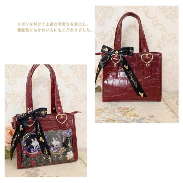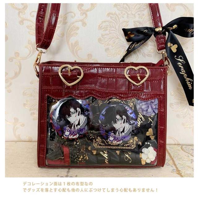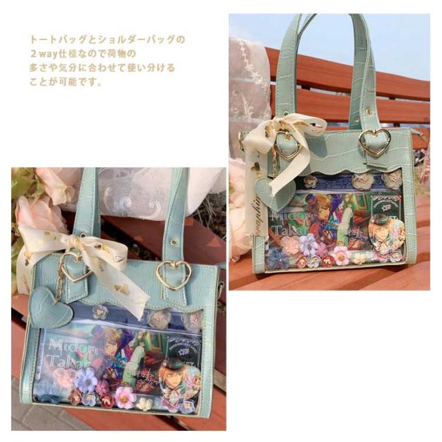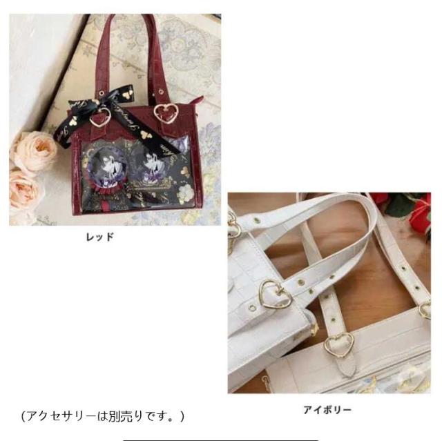 | スタイリングにも合わせやすいおしゃれデザインの痛バッグが登場! リボンを付けて上品な可愛さを演出し、機能性にもかわいさにもこだわりました。 デコレーション面は1枚の布型なのでグッズを落とす心配も他の人にぶつけてしまう心配もありません! トートバッグとショルダーバッグの2way仕様なので荷物の多さや気分に合わせて使い分けることが可能です。 裏返すと痛バッグ感の無い、甘めのトートバッグとしてもお使い頂けます。 大容量で、必要なものがすぐ取り出せる機能的なバッグ。 | |
