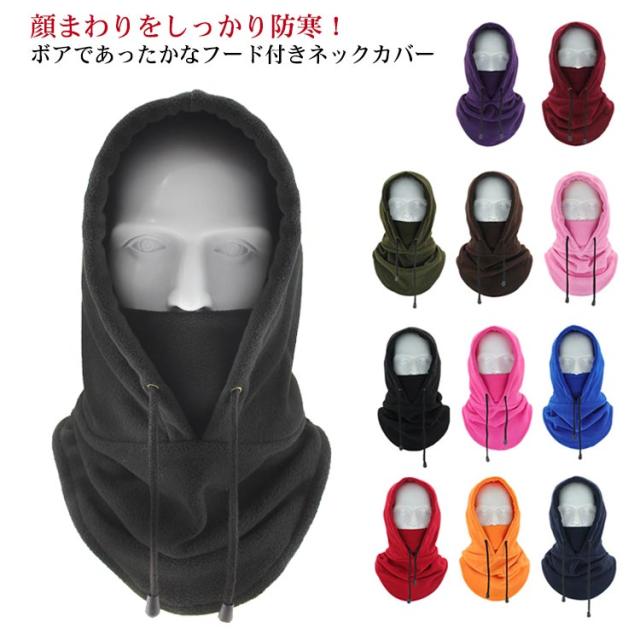 フード付き ネックウォーマー ボア フリース 防寒 防風 マフラー フェイスガード フェイスマスク スヌード 3way 冬 もこもこ あったかい 暖かい 無地 シンプル かわいい メンズ レディース スノーボード スキー アウトドア スポーツ キャンプ 通勤 通学 自転車 送料無料