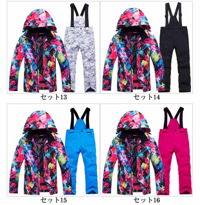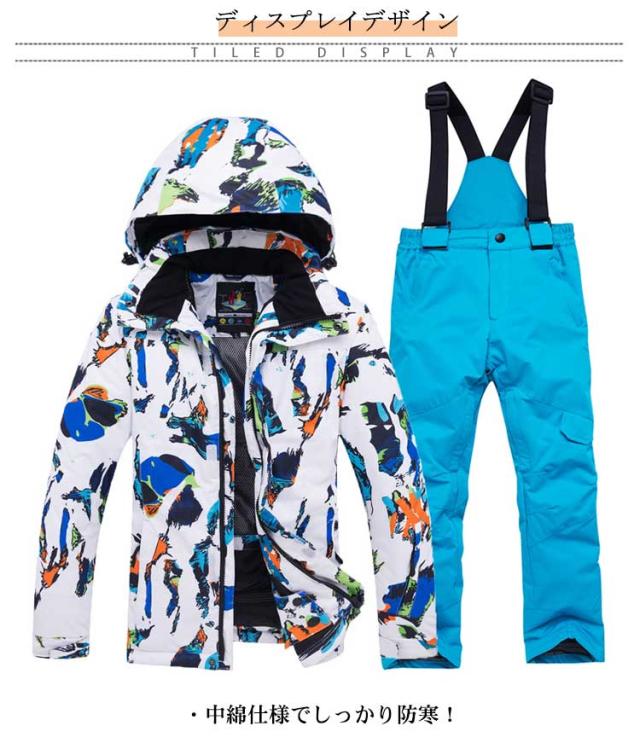 スノーボードウェア 上下セット キッズ スキーウェア 子供用 こども用 スノボウェア スノーウェア ボードウェア スノボーウェア ジュニア 男の子 女の子 スノーボード ジャケット パンツ 冬 雪遊び 撥水 防寒 総柄 100cm 110cm 120cm 130cm 140cm 150cm 160cm 送料無料
