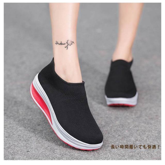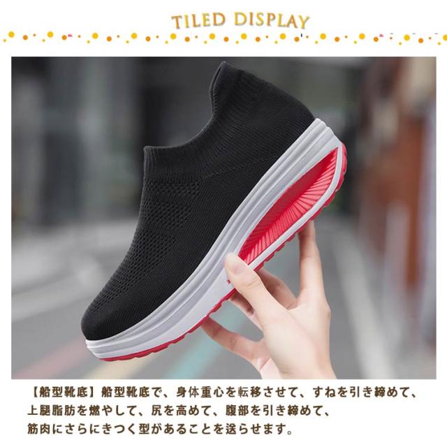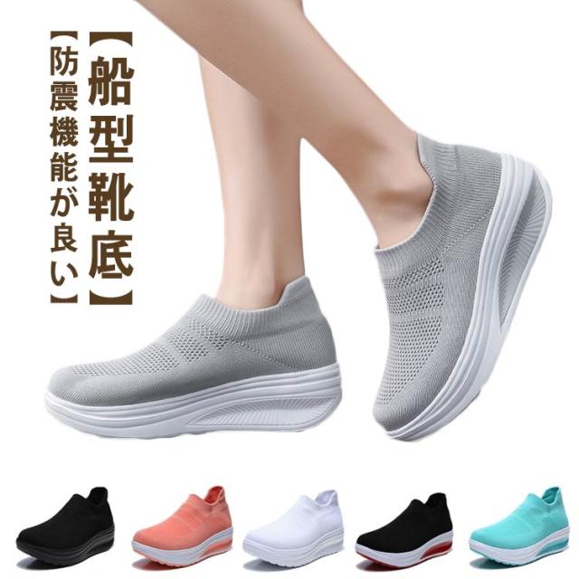 ダイエットシューズ レディース ニットスニーカー 厚底スニーカー 運動 スポーツシューズ 履きやすい 歩きやすい ダイエットシューズ ナースシューズ 姿勢矯正 厚底 船型底 ウォーキングシューズ 軽量 婦人靴 母の日 30代 40代 50代