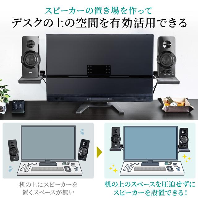 ⇒ご購入の前にご確認下さいスピーカーをモニター横に設置でき、デスク上のスペースを有効利用できる。VESA100×100に取り付けでき、2chスピーカーに最適なスピーカースタンド。滑り止めシート付き。【WEB限定商品】