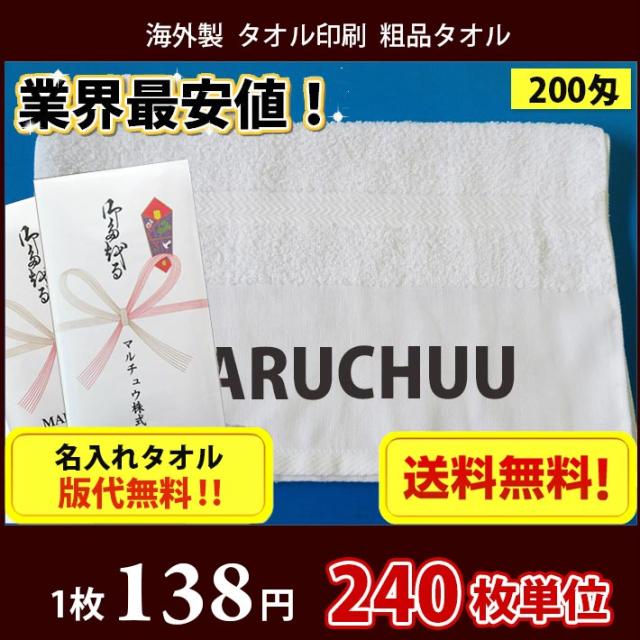 【送料無料】 タオル 名入れタオル 海外製 外国製200匁平地 のし印刷 タオル印刷 粗品タオル お年賀タオル 240枚単位