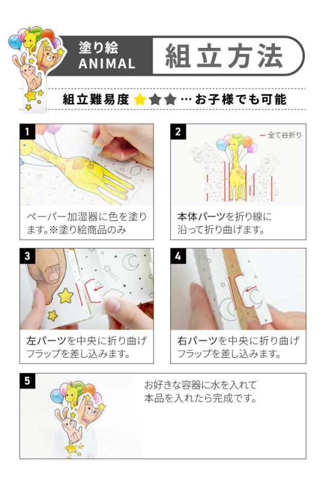 ペーパー加湿器 ぬりえ(ANIMAL) エコ加湿器 日本製 電気不要 卓上 ペーパー加湿器 エコロジー オリジナル 塗り絵 子供 大人 動物 プレゼント ギフト 贈り物