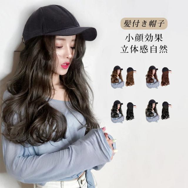 帽子ウィッグ レディース かつら ロング巻き 暖かい つけ毛 エクステ キャップ 髪付き帽子 セミロング 自然パーマ ニット 日常