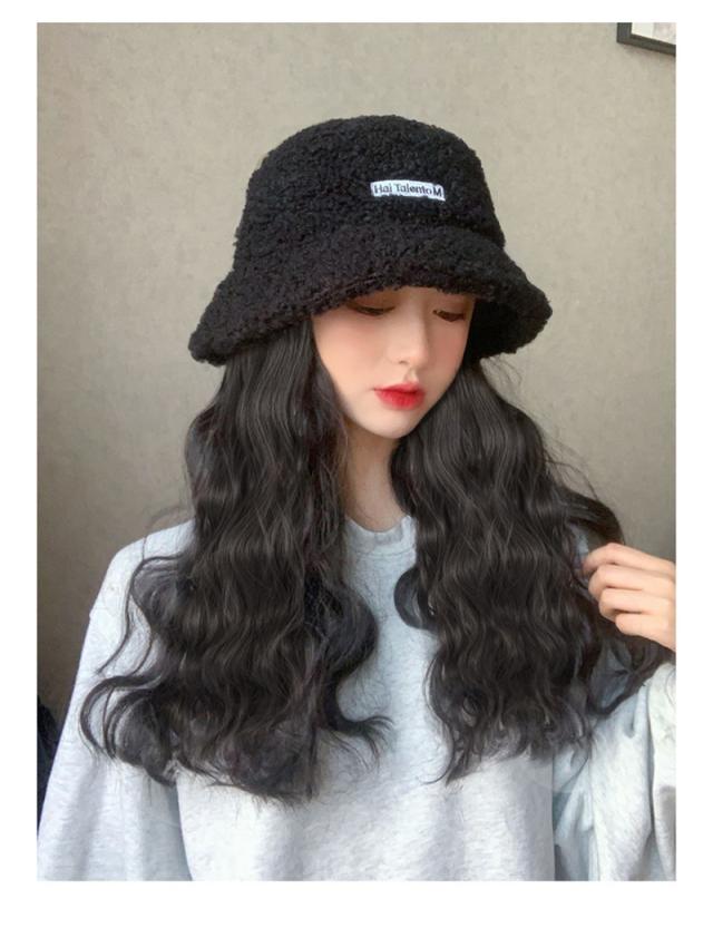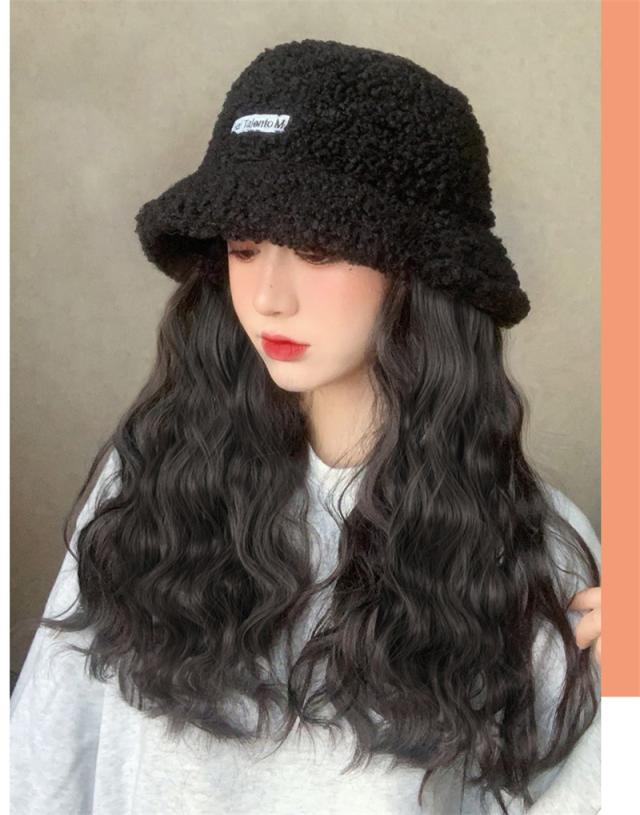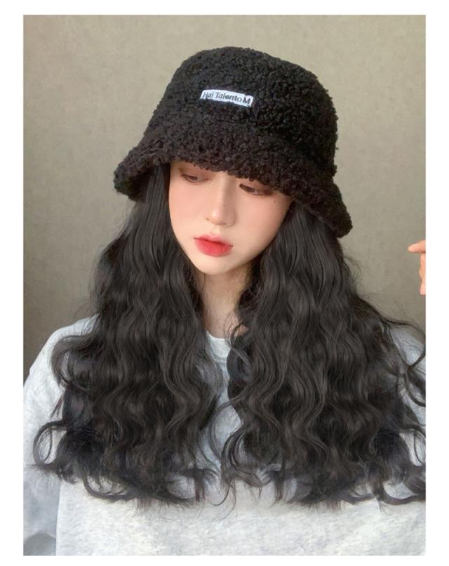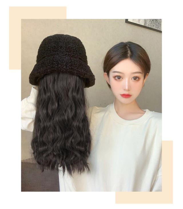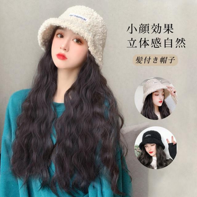 帽子ウィッグ レディース かつら ロング巻き 取り付け可 暖かい つけ毛 エクステ キャップ 髪付き帽子 セミロング 自然パーマ