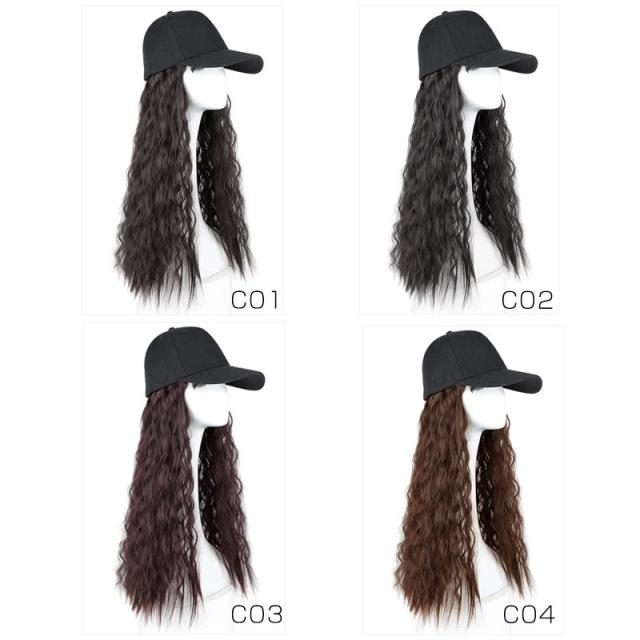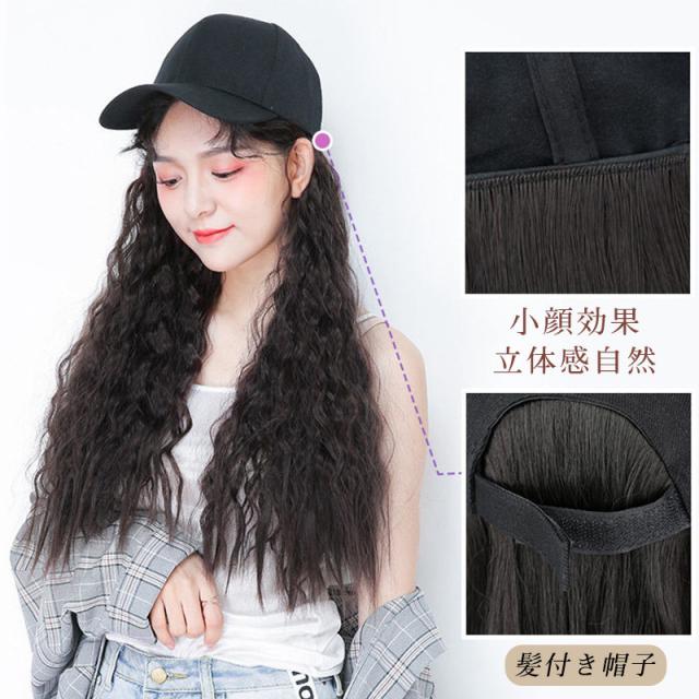帽子ウィッグ レディース かつら ロング巻き 暖かい つけ毛 エクステ キャップ 髪付き帽子 セミロング 自然パーマ ニット 日常