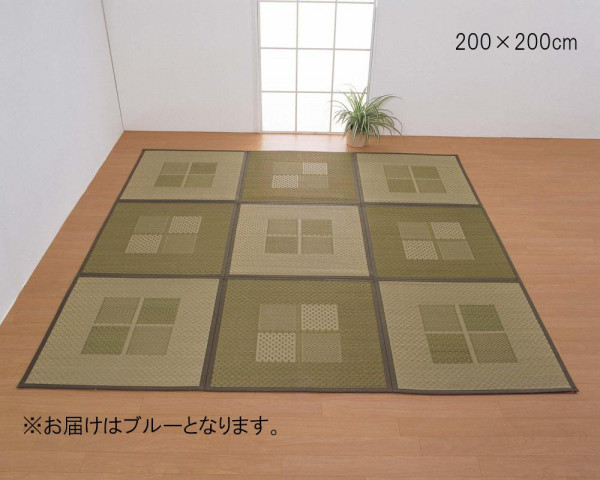 緑茶染め い草アクセントラグ 祇園 約200×200cm ブルー TSN340030【送料無料】(同梱・代引不可)