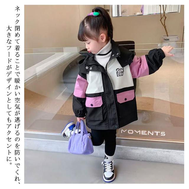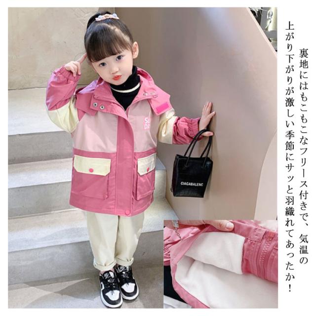 子供 マウンテンパーカー キッズ ベビー ウインドブレーカー ジャケット コート 羽織り 上着 ライトアウター モッズコート ハイネック ストレッチ フード 裏フリース ボア 暖かい 防寒 防汚 防風 子供服 キッズ ベビー 女の子 ガールズ