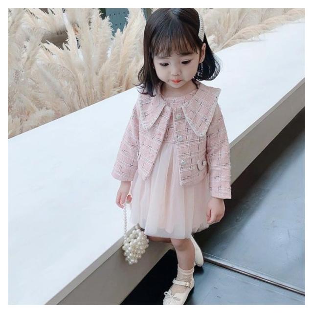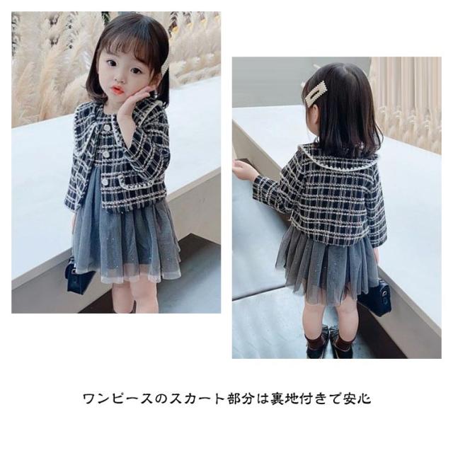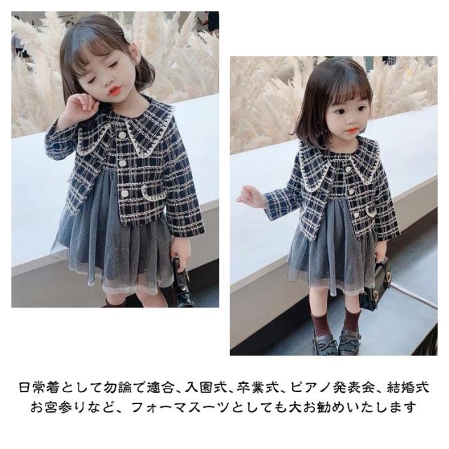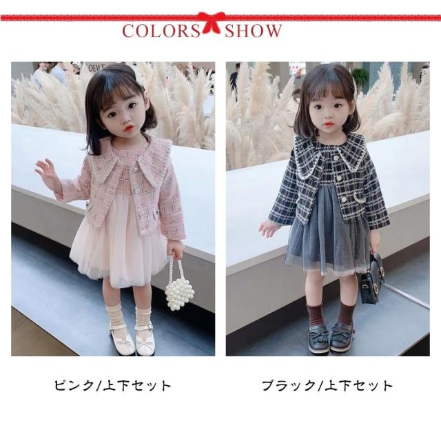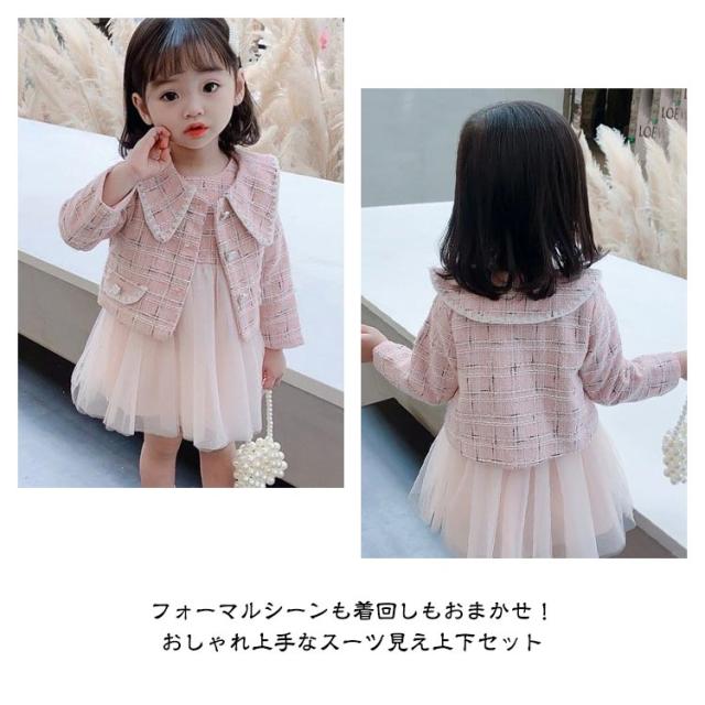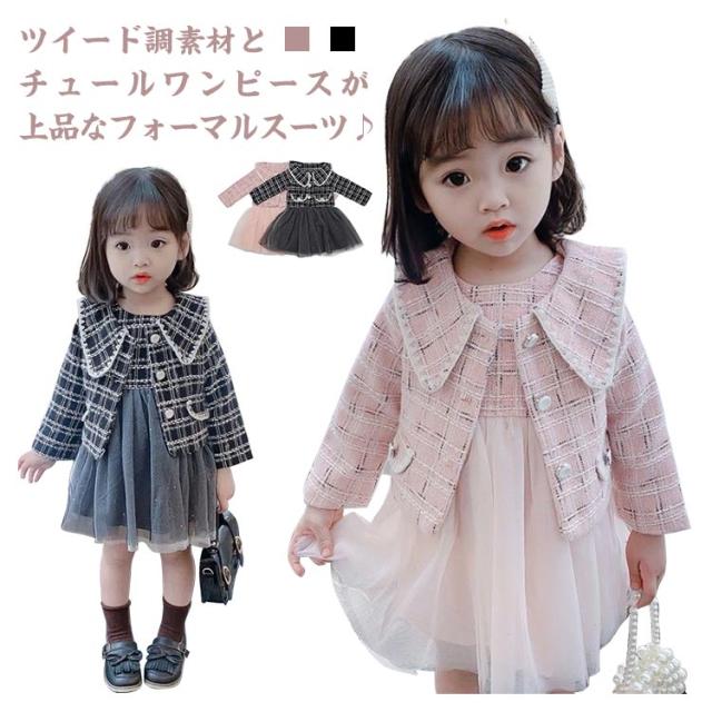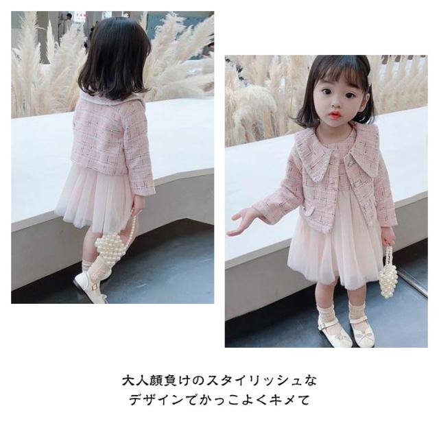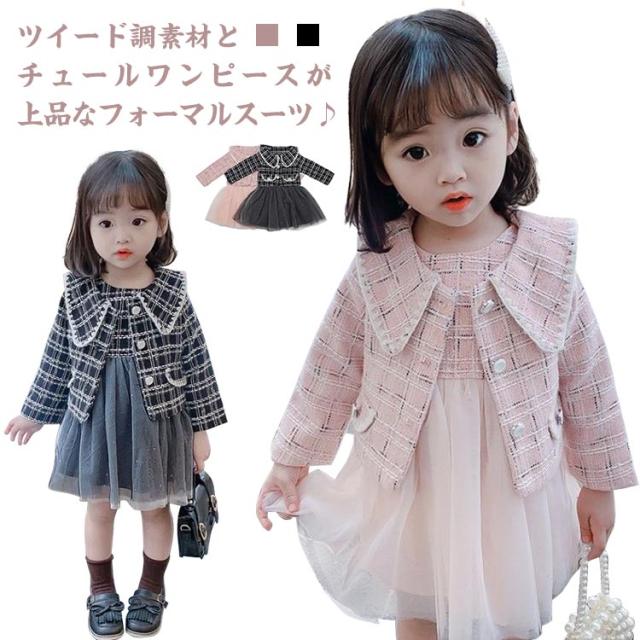 | ツイード調素材とチュールワンピースが上品なフォーマルスーツ♪ 大人顔負けのスタイリッシュなデザインでかっこよくキメて。 フォーマルシーンも着回しもおまかせ!おしゃれ上手なスーツ見え上下セット。 ワンピースのスカート部分は裏地付きで安心。 落ち着いたブラックとピンクの定番カラーと丁度良い厚みの生地感だから、季節によって薄手のカーディガンと合わせたり、ワンピース一枚でも着こなしが可能◎ 日常着として勿論で適合、入園式、卒業式、ピアノ発表会、結婚式、お宮参りなど、フォーマスーツとしても大お勧めいたします。 | |