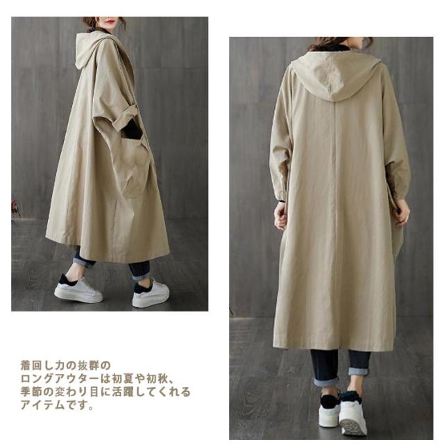 | オーバーサイズのフード付きロングコート! ゆったりとしたデザインで体型を気にせず着用いただけます。 フロントに大きいポケットがついていてとても便利です! ゆったりとした作りで厚手のインナーでも着膨れせず着用いただけます。 ふわっと広がるシルエットがお洒落なアイテム。 ボトムやインナーを選ばない、さっと羽織るだけでかっこよく決まる優秀デザインです。 着回し力の抜群のロングアウターは初夏や初秋、季節の変わり目に活躍してくれるアイテムです。 | |