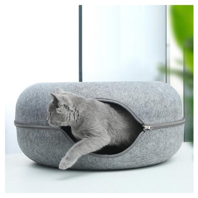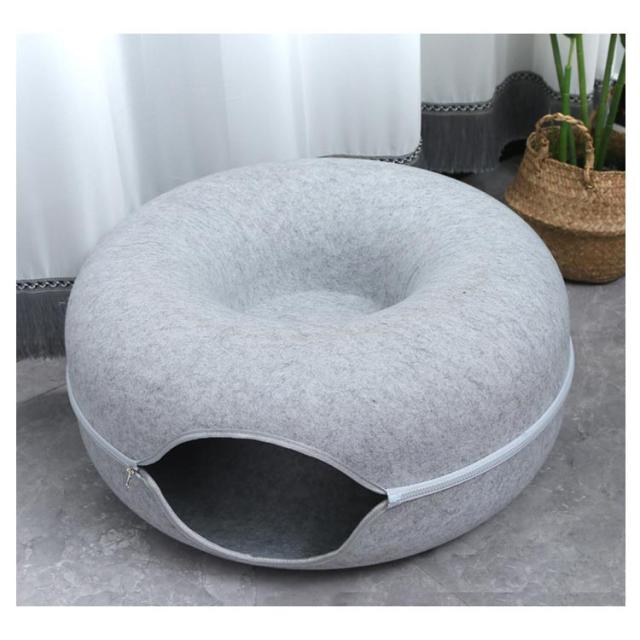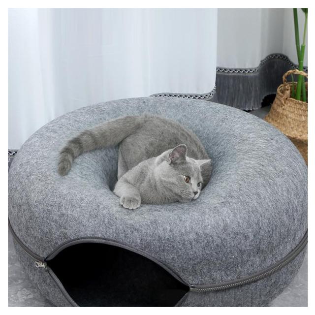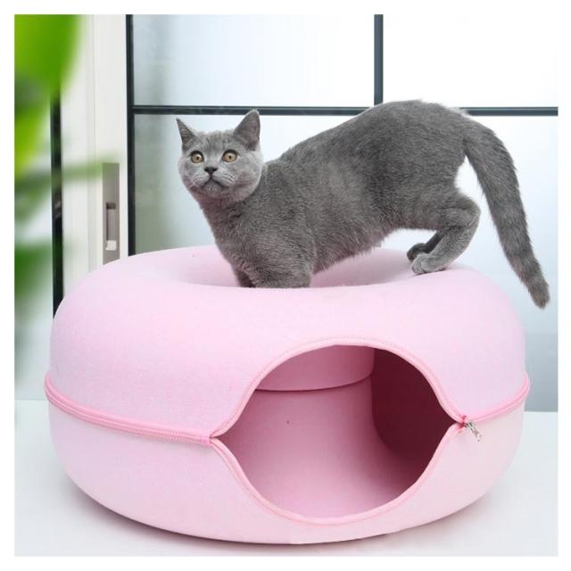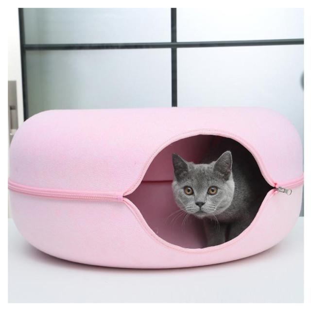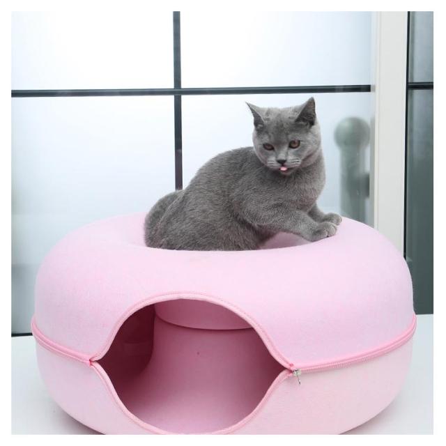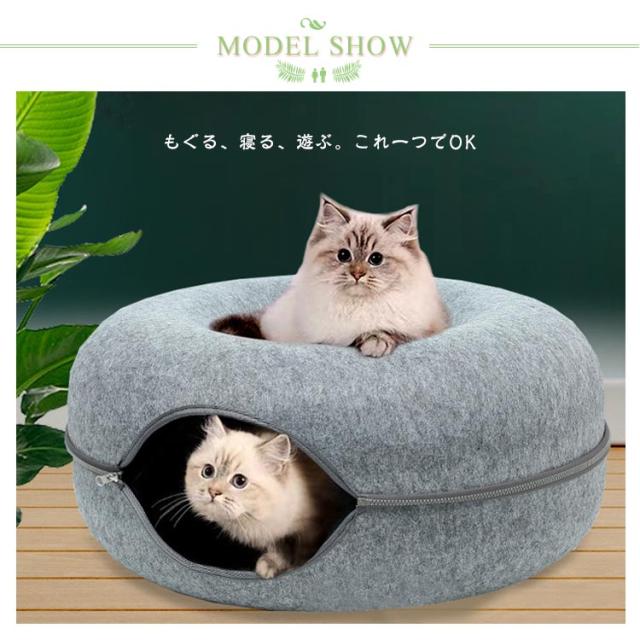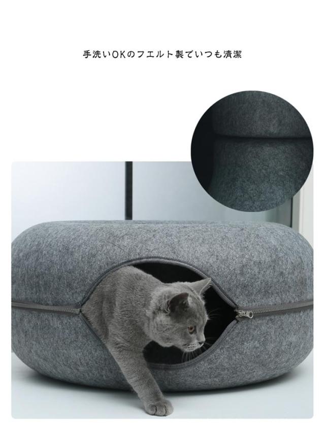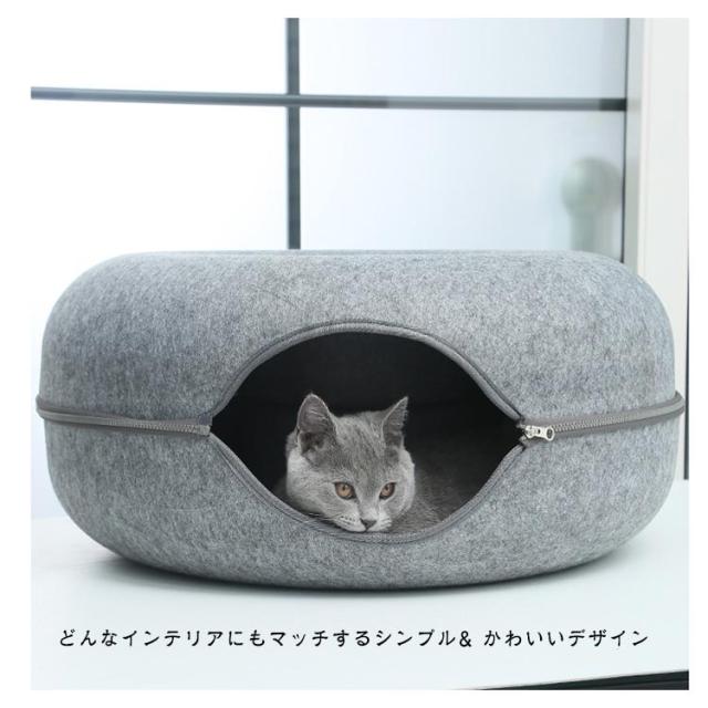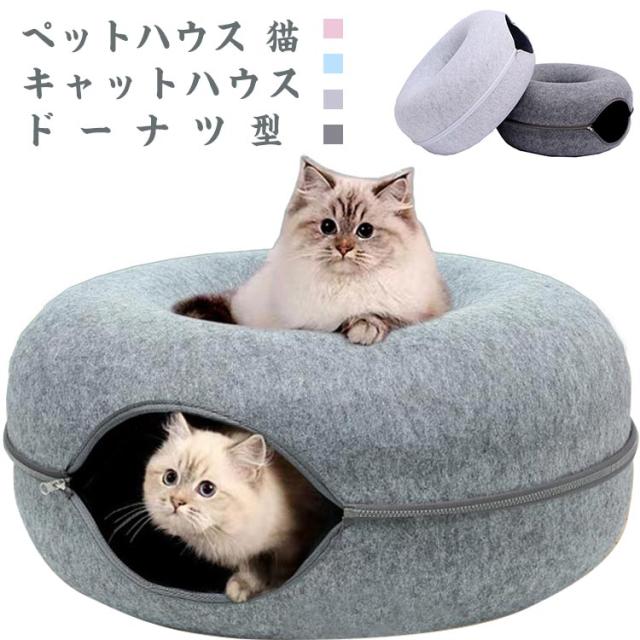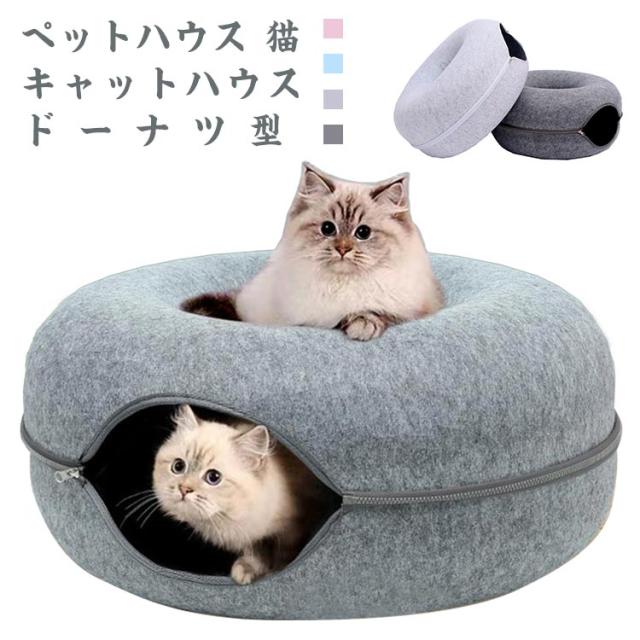 ペットハウス 猫 ドーナツ型 キャットハウス 丸型 柔らかい 猫ハウス あたたかい 冬用 ドーナツ型 お昼寝 寒さ対策 通気性抜群 ペットベッド ペット用寝袋 ドーム型 フエルト製 送料無料
