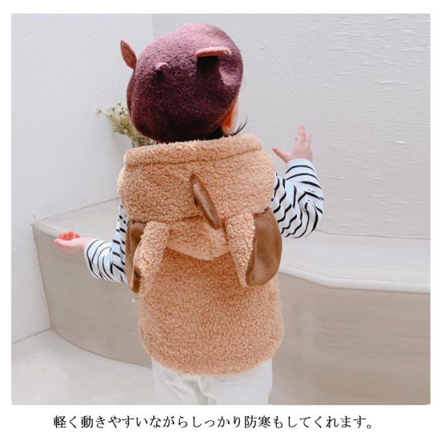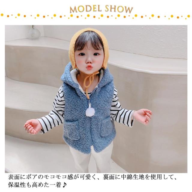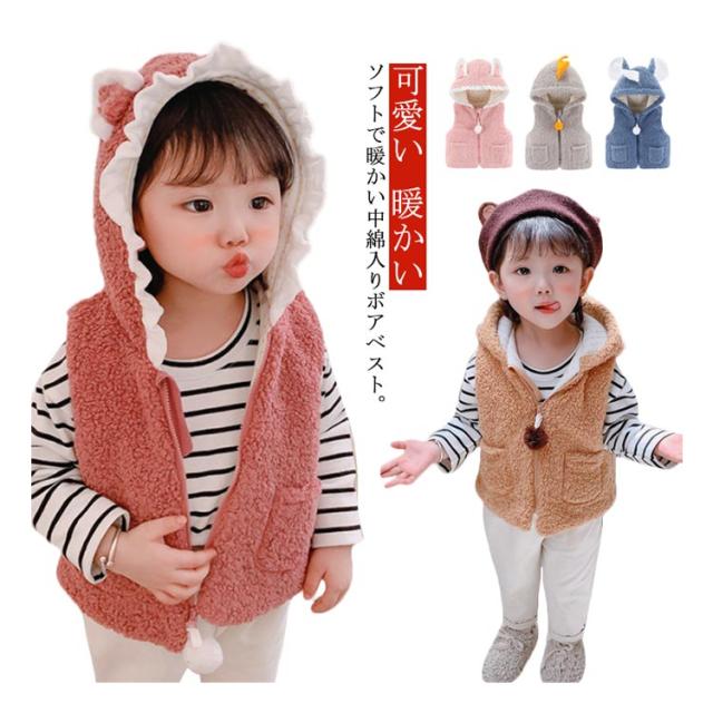 子供 ボア ベスト 赤ちゃん ベビー 女の子 男の子 中綿ジャケット ノースリーブ キッズ ジュニア ベビー服 耳 フード付き パーカー ジレ ジップアップ 秋冬 暖かい 新生児 可愛い もこもこ 男女兼用 部屋着 ルームウェア 出産祝い ギフト プレゼント 春 秋 冬 送料無料