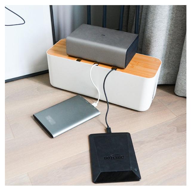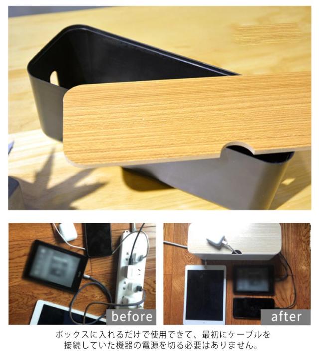 | お洒落にスッキリ収納できる電源タップボックス ナチュラル風合い、置くだけでワンランク上のインテリア空間を演出してくれます。 ボックスに入れるだけで使用できて、最初にケーブルを接続していた機器の電源を切る必要はありません。 底部はたっぷりの穴あき、スムーズに放熱ができる。暑い日にも安心してご利用いただけます。 フタの上は小物置き場にも◎卓上をスッキリ収納できる便利なアイテムです。 | |
