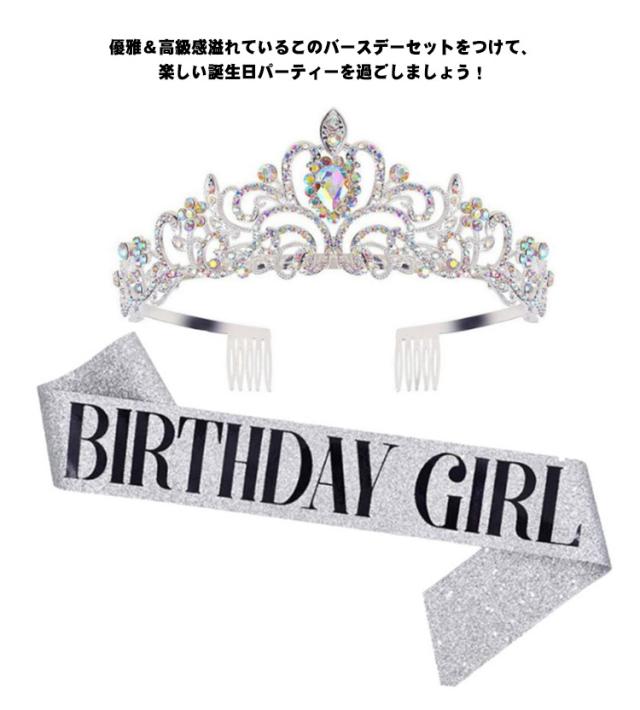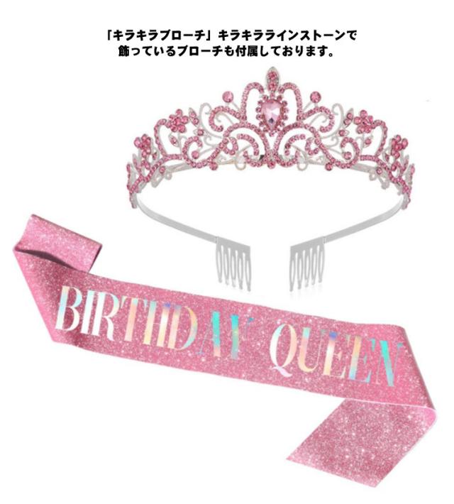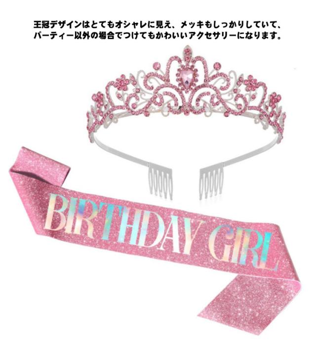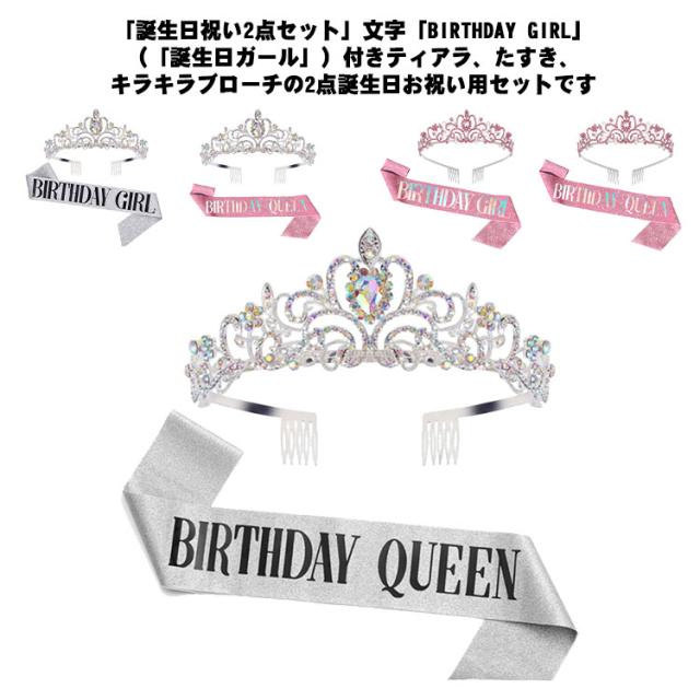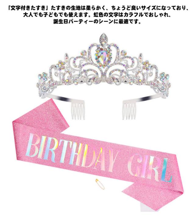 送料無料 誕生会 バースデー タスキ ティアラ たすき 王冠 2点セット キラキラ パーティー バースデイ 誕生日 グッズ 演出 主人公 飾り 女の子 おしゃれ