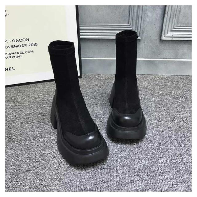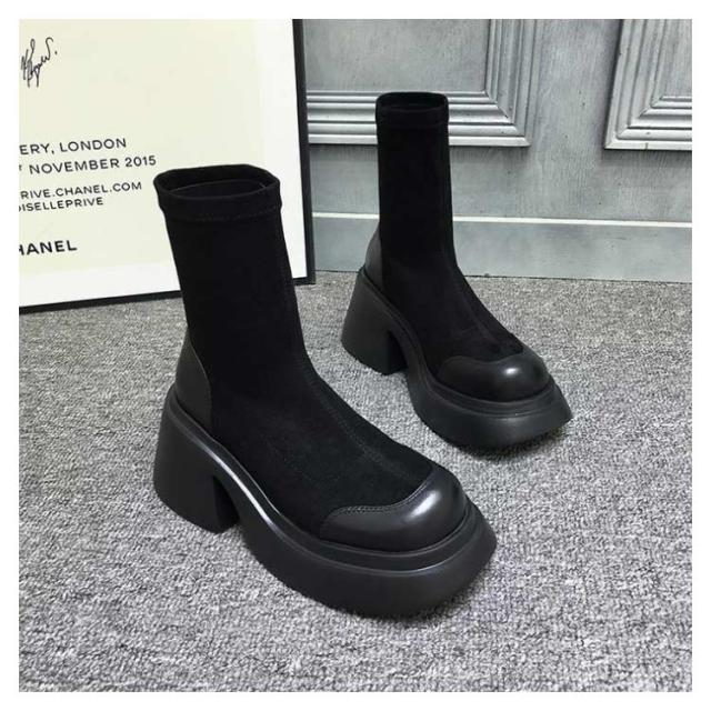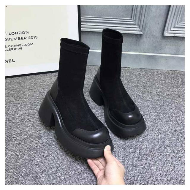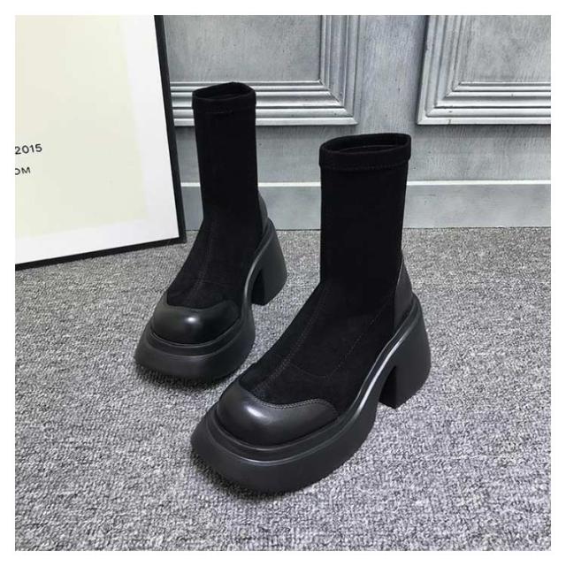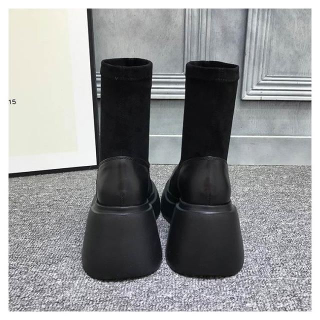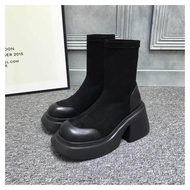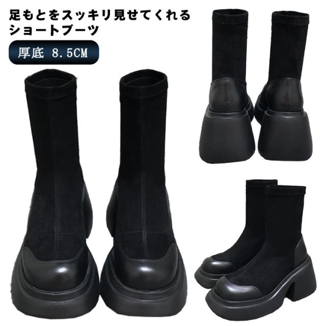 サイドゴアブーツ レディース ショートブーツ ミドルブーツ 厚底 8.5cm ミドルヒール 歩きやすい 履きやすい 春秋 靴 シューズ