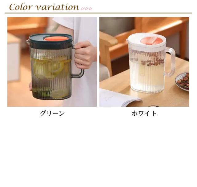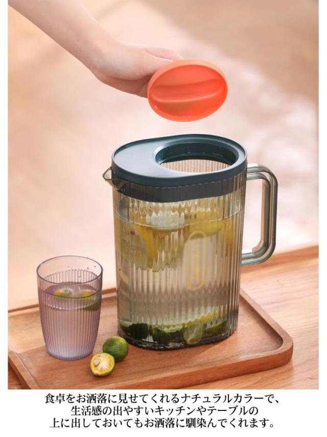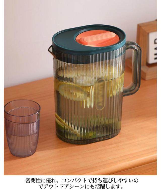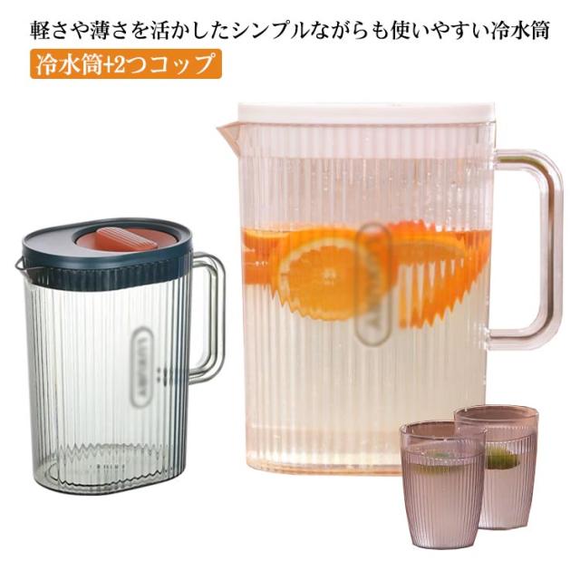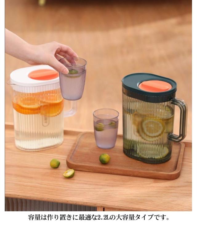 | 軽さや薄さを活かしたシンプルながらも使いやすい冷水筒 冷水筒、コップ*2の3点セット 耐熱性の丈夫なプラスチックなので、沸かしたてのお湯やお茶をそのまま入れることができます 密閉性に優れ、コンパクトで持ち運びしやすいのでアウトドアシーンにも活躍します 容量は作り置きに最適な2.2Lの大容量タイプです 上部持ち手付きなので、野菜室に入れても取り出しやすいです! 食卓をお洒落に見せてくれるナチュラルカラーで、生活感の出やすいキッチンやテーブルの上に出しておいてもお洒落に馴染んでくれます | |