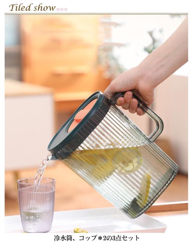 送料無料 3点セット コップ付き 冷水筒 耐熱 洗いやすい プラスチック 水差しポット 冷水ポット おしゃれ 水出し ポット おしゃれ 水差し 新生活 防汚加工 麦茶 ポット 熱湯
