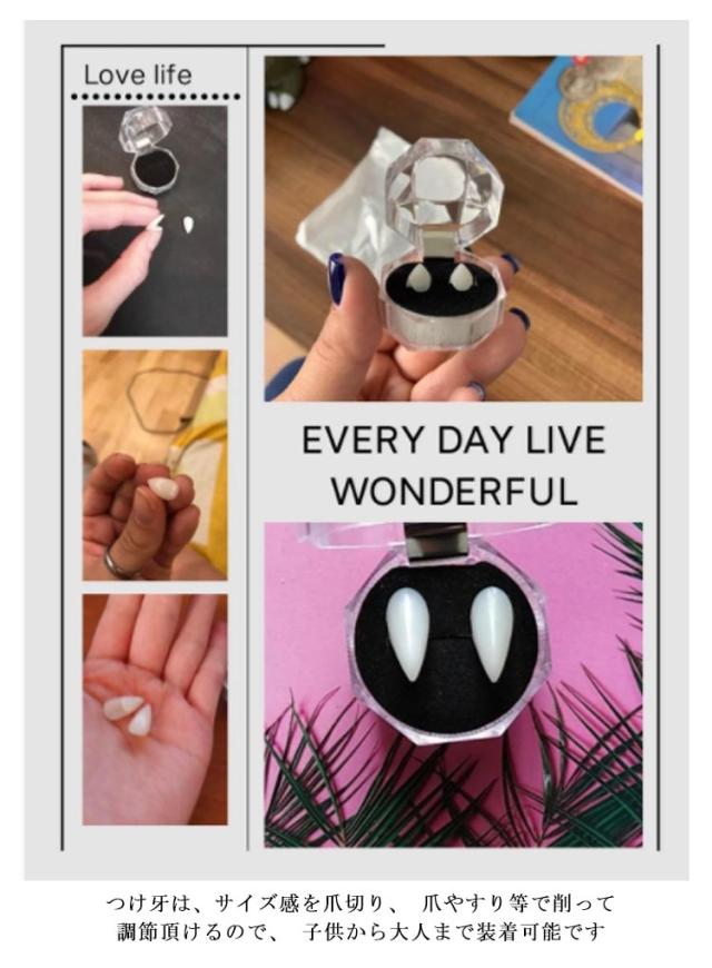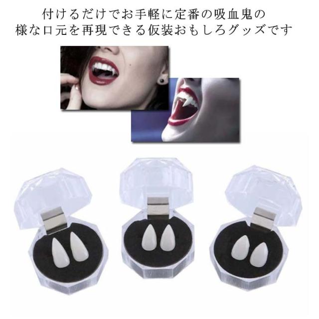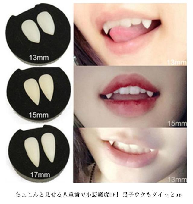 | 付けるだけでお手軽に定番の吸血鬼の様な口元を再現できる仮装おもしろグッズです ちょこんと見せる八重歯で小悪魔度UP! 男子ウケもグイっとup つけ牙は、サイズ感を爪切り、 爪やすり等で削って調節頂けるので、 子供から大人まで装着可能です コスプレ用の衣装などと合わせればより本格的に再現ができます | |