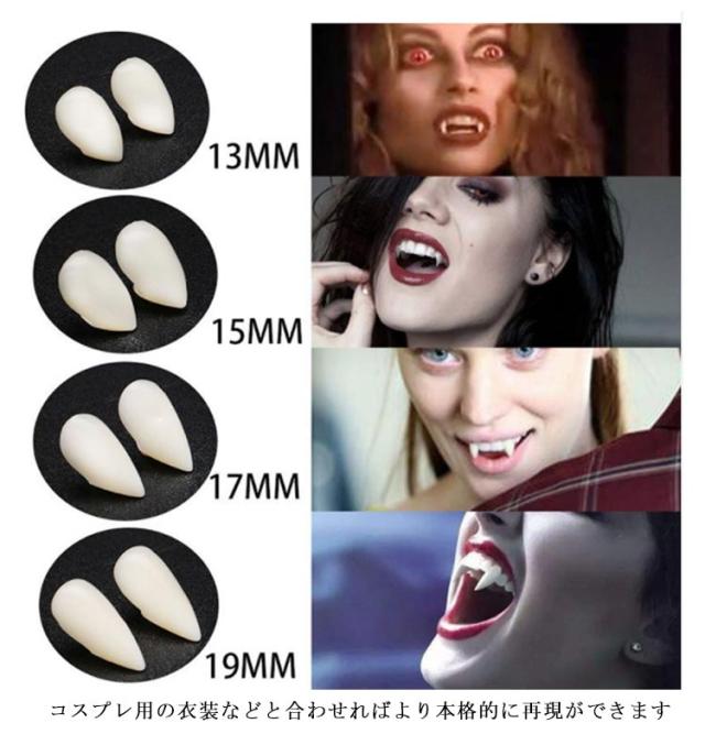 送料無料 2点セット ハロウィン コスプレ 子供 魔女 大人 レディース メンズ 男の子 女の子 デビル メイク 牙 つけ牙 付け牙 付牙 つけ八重歯 セット かわいい 付けキバ 小悪魔 バンパイア コスチューム 13mm 15mm 17mm 19mm
