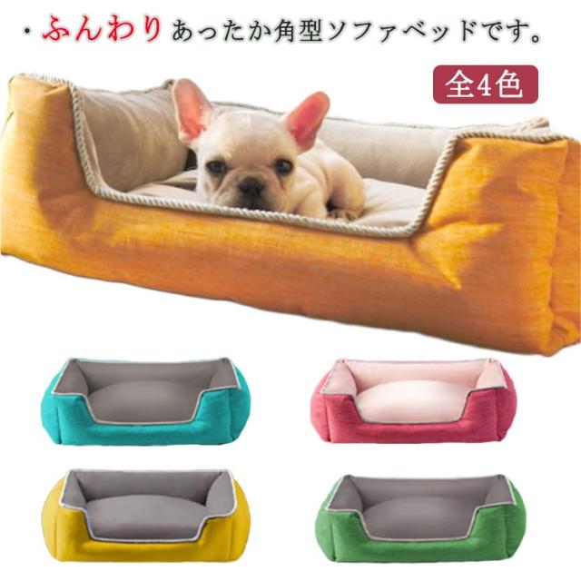 ペットソファー ペットベッド 洗える 角型 60×45×19cm 小型犬 中型犬 クッション取り外せる 丸洗い 洗濯機洗いOK 耐久性 オールシーズン 無地 全4色
