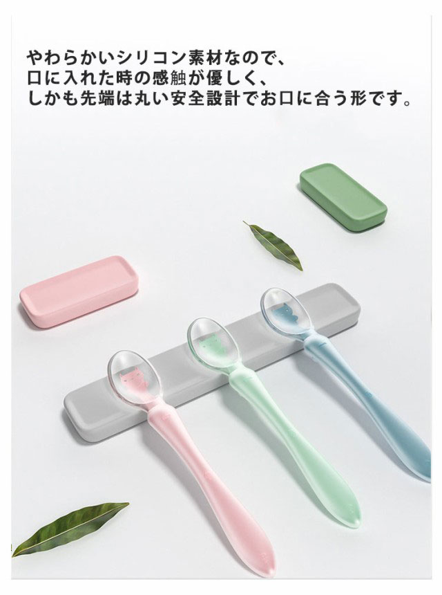 【送料無料】カトラリーセット スプーン2点 ケース付き ベビー食器 ベビースプーン シリコン 柔らかい お食事用品 携帯 かわいい 通学 通園 お弁当グッズ おしゃれ ピクニック アウトドア エコ キッズ 入学 入園 贈り物 ギフト プレゼント