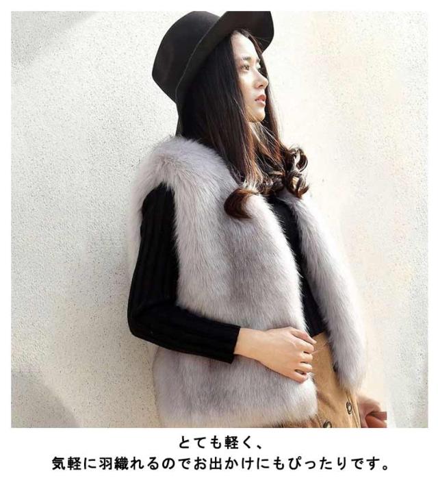 エコファー ベスト ノーカラー ショート フェイクファー ジレ ファーベスト ファーコート ファージャケット エレガント コーディガン 羽織 ショートベスト もこもこ ジレ ゆったり 大きいサイズ 40代 50代 レディース 個性的 送料無料