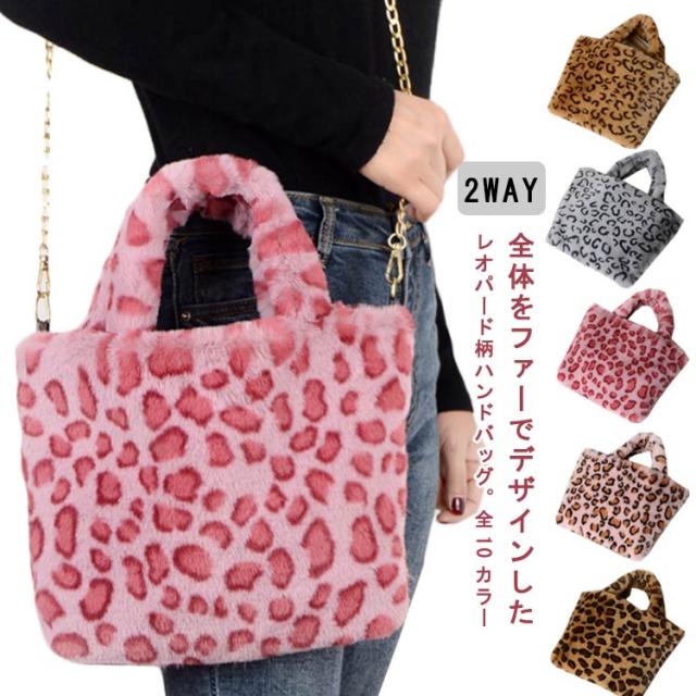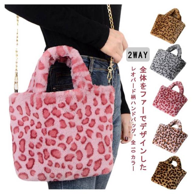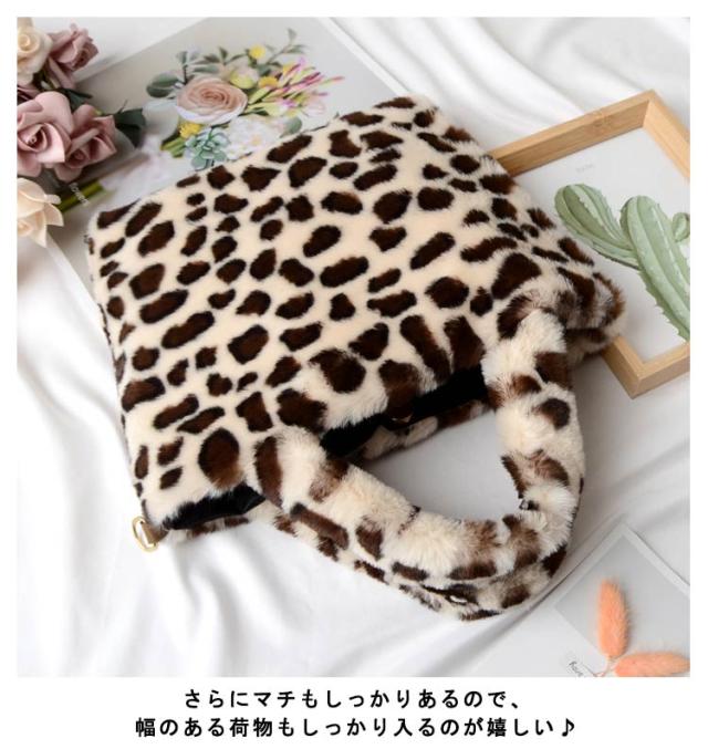 レオパード柄 ハンドバッグ トートバッグ レディース 2way ショルダーバッグ ファー バッグ バック カバン ファーバッグ かばん 鞄 斜めがけ ふわふわ フワフワ モフモフ エコファー 大容量 もこもこ 軽量 ショッピングバッグ