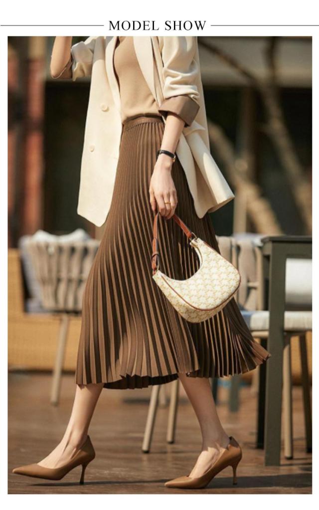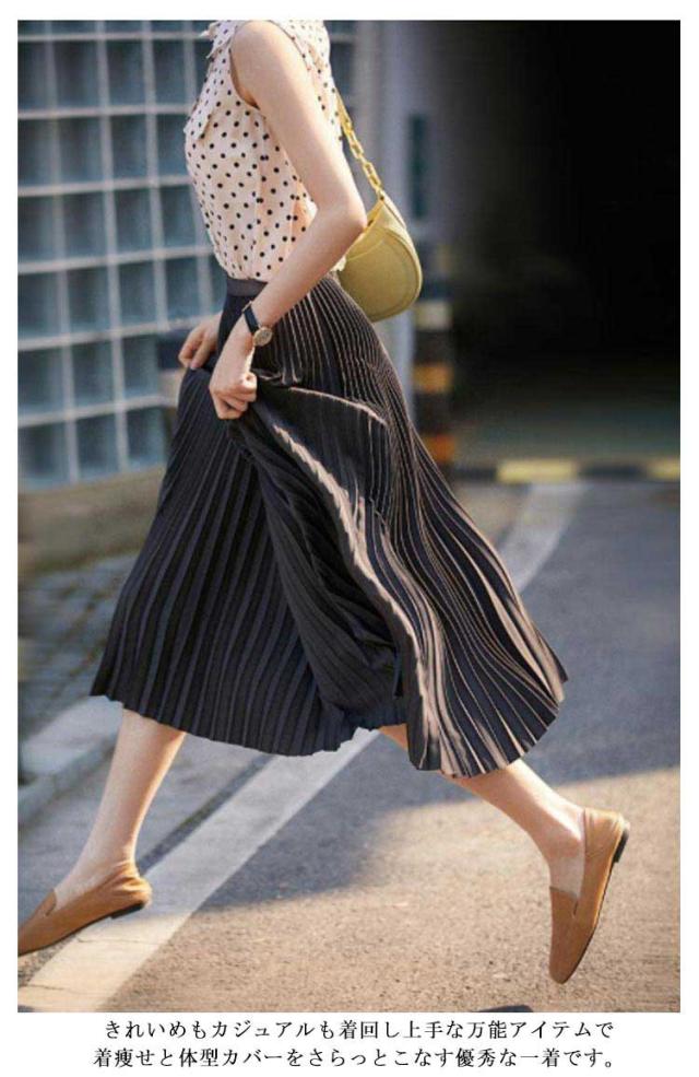 プリーツスカート スカート ロングスカート フレアスカート ハイウエスト ウェストゴム おしゃれ 春 秋 冬 体型カバー 切り替え カラーバリエーション 選べる丈 通勤 シンプル エレガント ビンテージ S M L XL