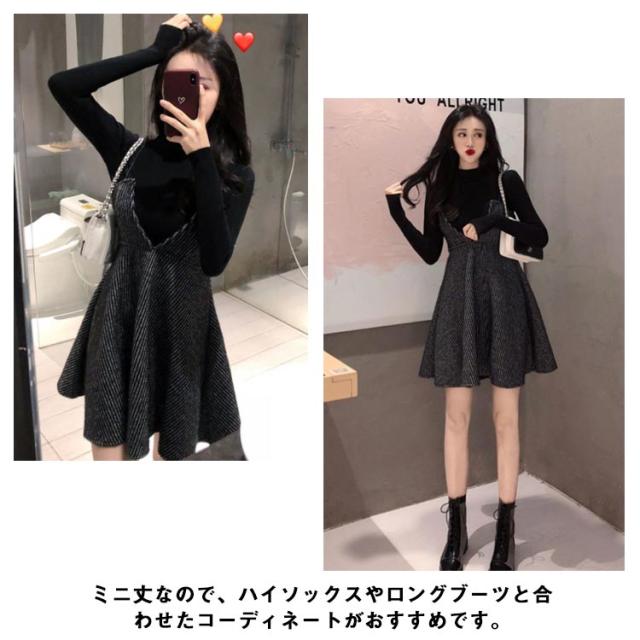 | 今季マストな深Vネックミニ丈キャミソールワンピースセットアップ。 深Vネックが女性らしいエレガントな着こなしを演出。 スカート部分はふんわりしたAラインシルエットで、上見頃はすっきりしたシルエットに仕上げました。 ミニ丈なので、ハイソックスやロングブーツと合わせたコーディネートがおすすめです。 | |